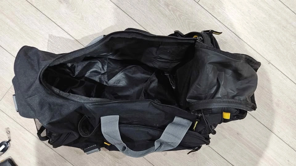 Used duffle bag. Was mainly used for travel. Has separate compartment for shoes