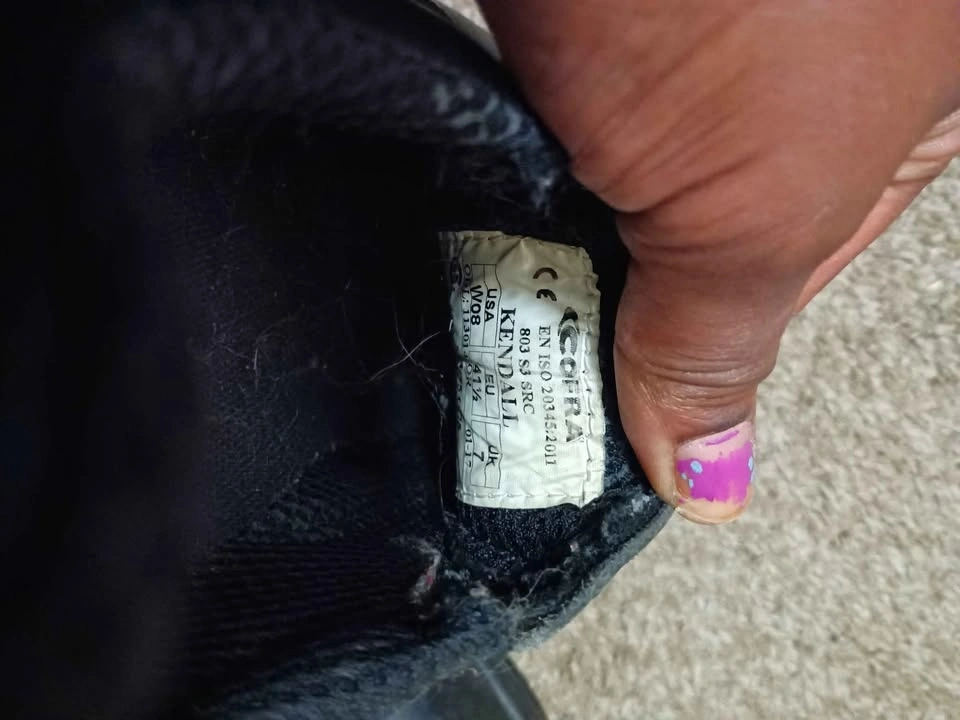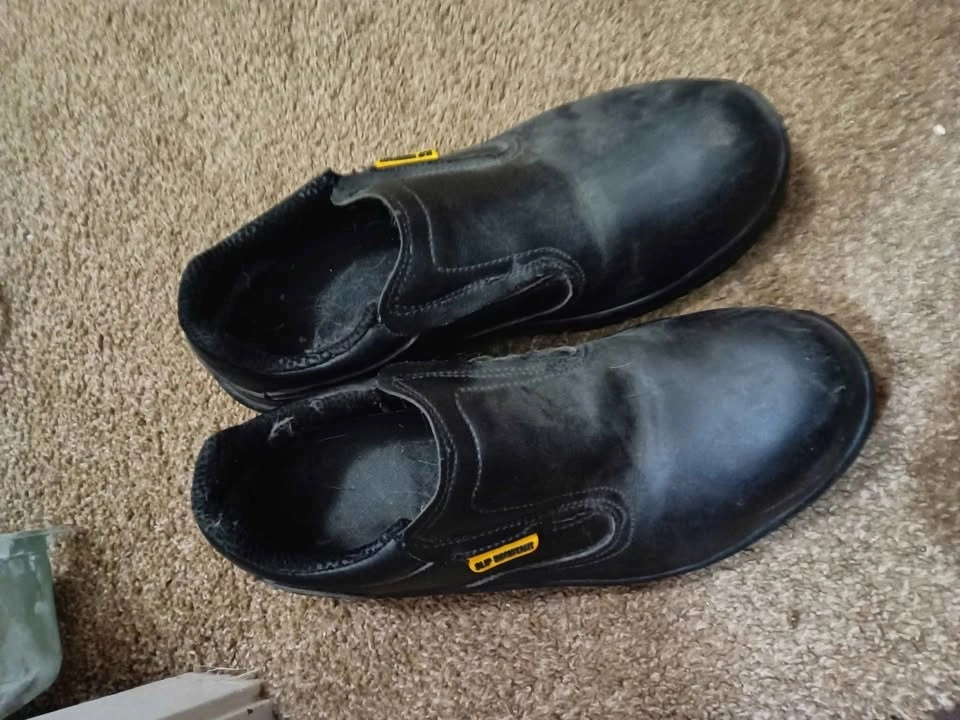 Hardly used Cofra "Kendall" slip-on work boots. They are a little dusty from sitting in the basement. Size USA W08 / EU 41½ / UK 7. These are slip-resistant steel-toed boots. I am a women's size 10 to 11 and can just get my feet into these, although it's very snug. I had to use these in a pinch years ago when my work boots broke on the site. Eastend pick up.