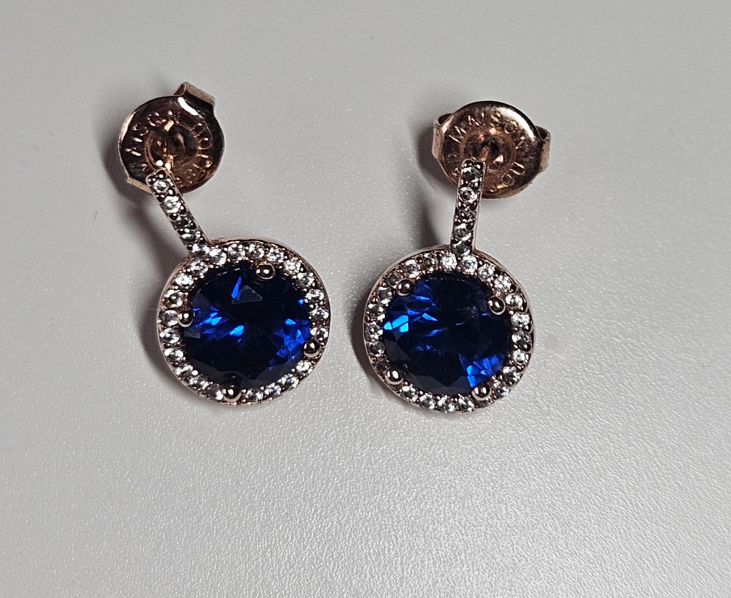 The vibrant blue cubic zirconia stones set in silver are perfect for adding a touch of sophistication to any outfit!
