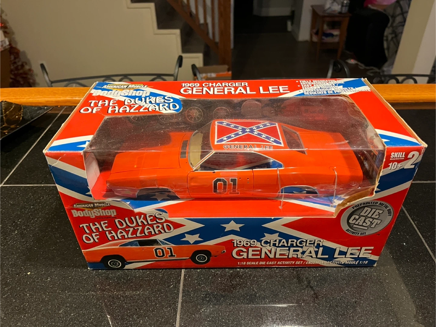 10Selling a Dukes of Hazzard 1969 Charger General Lee 1:18 scale die-cast activity set! It comes with the box and looks to be in great condition. It includes a screwdriver and glue.