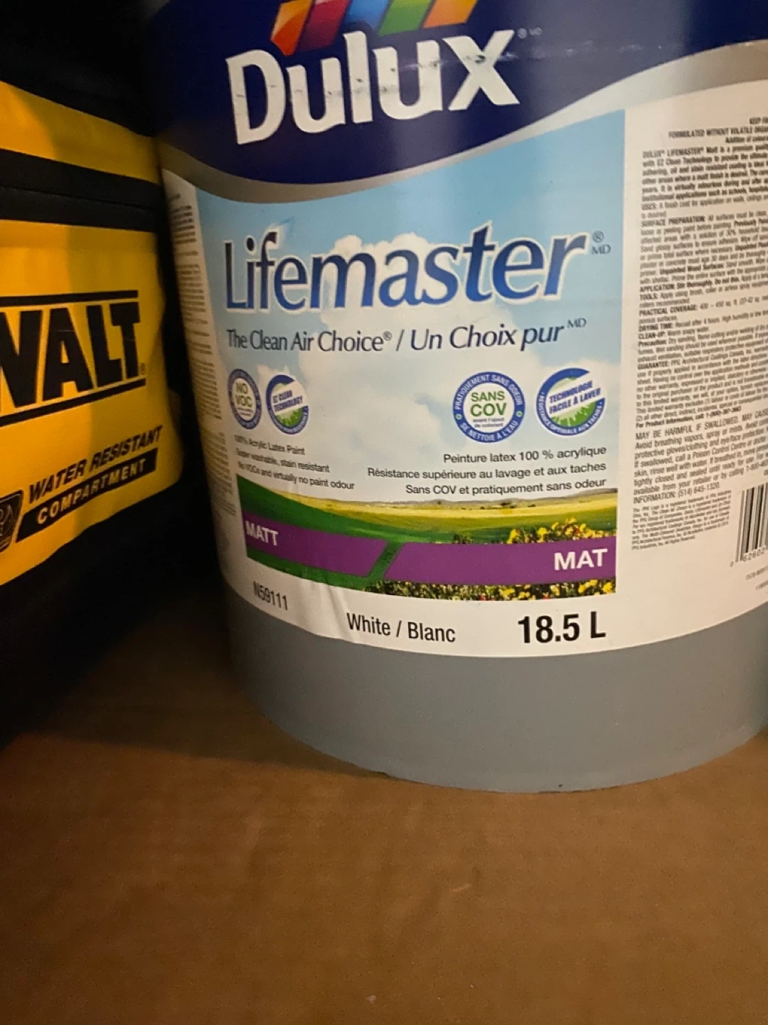 30Selling a bucket of Dulux Lifemaster paint in white! It's the Clean Air Choice and comes in an 18.5 L bucket. Great for a fresh coat of paint!