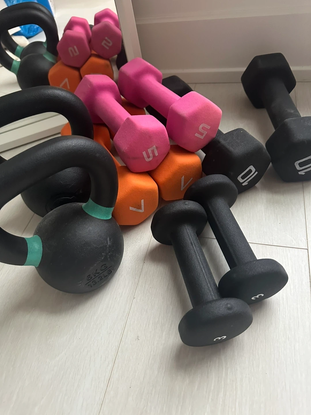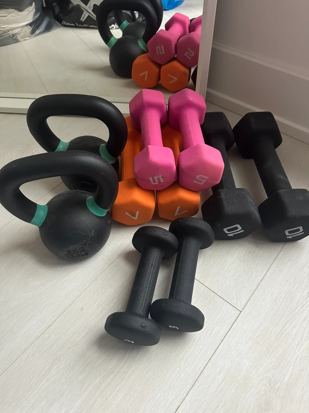 10Selling a set of dumbbells and kettlebells in good condition. Includes various weights.