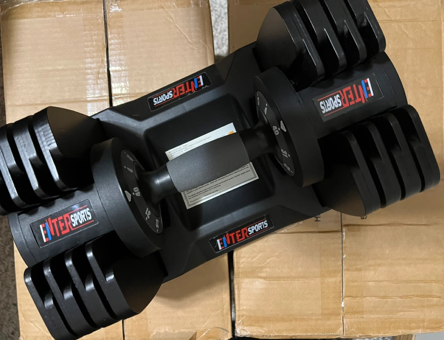 10Selling a set of adjustable 40 lbs dumbbells set from EnterSports. Great for home workouts. Barely used/ like new.