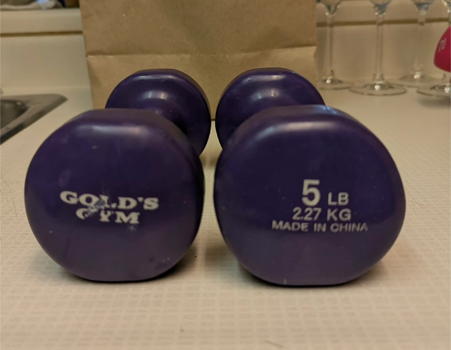 164Selling a set of dumbbells in good condition! This set includes: - One pair of Gold's Gym 5lb dumbbells - One pair of Alex 3lb dumbbells - One Pair of 2lbs dumbbells