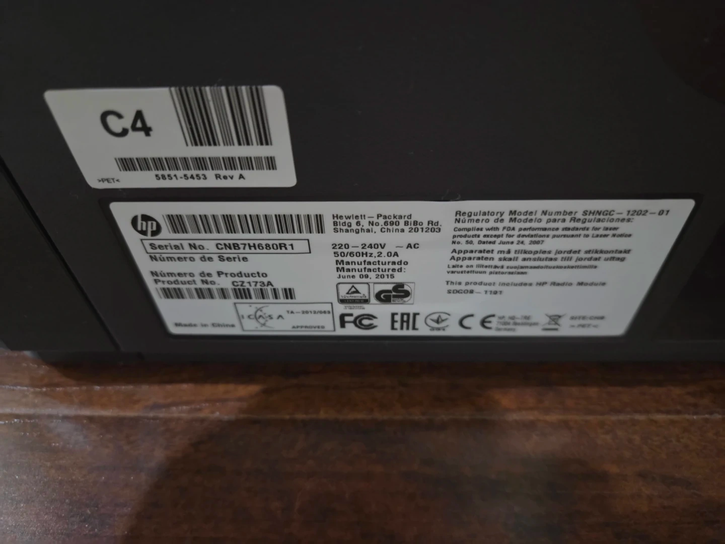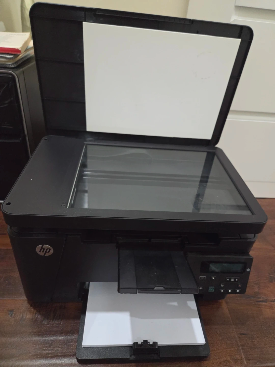 This is an HP LaserJet MFP M126a printer. It's a black all-in-one device that can print, copy, and scan. Manufactured June 09, 2015. It's made in China.