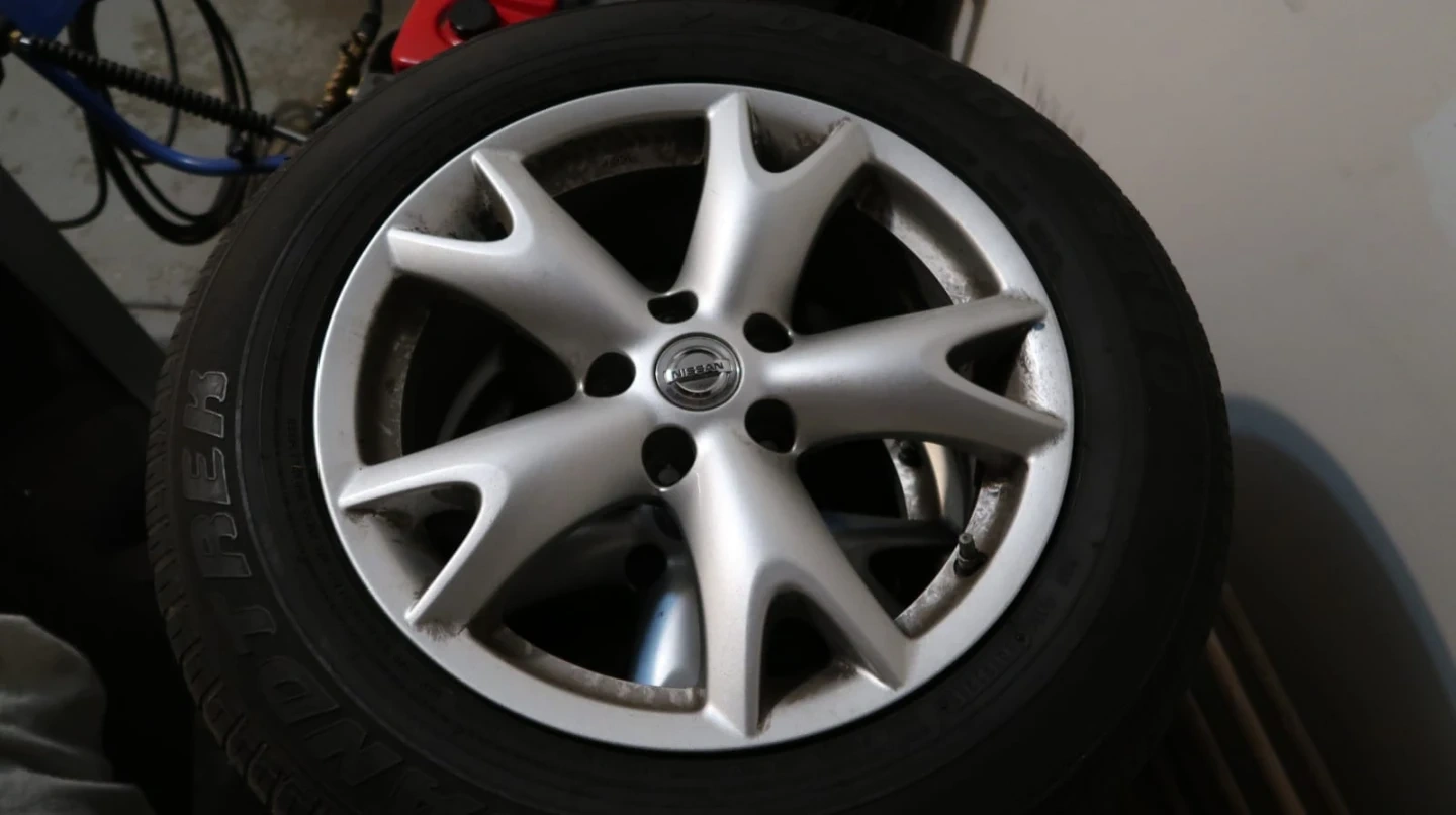 65The tire size is 225/50R17. 4 all season tires on rims. Used for less than 2 years. Tire treads in good condition. Works well in light snow conditions.