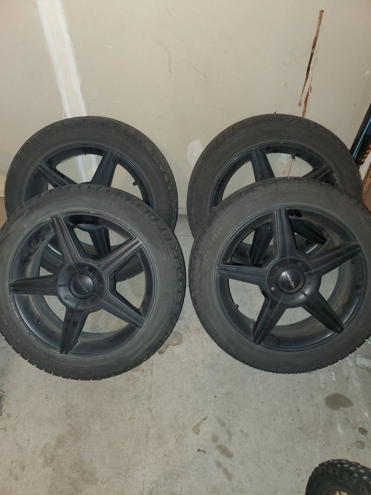 89Selling my Dunlop WinterMaxx Tires and rims included. Recently purchased back in February 2025. Less than 2k driven on them. Lots of life left. 3 or 4 more Winters. 5 x 114.3 bolt pattern 235/45/R17 They came off my old Acura TL. had radiator problems and had blown engine. Not tyre related.
