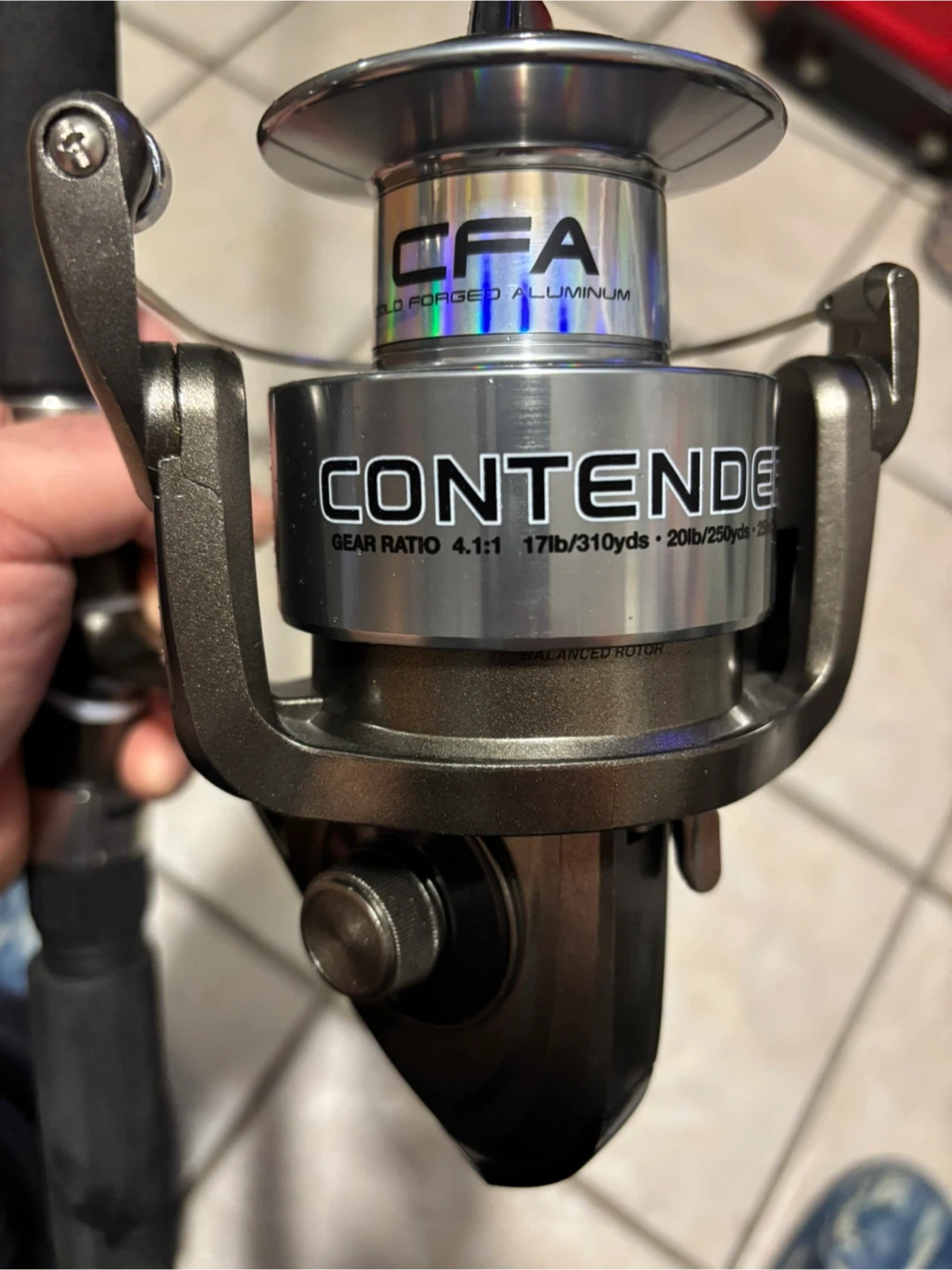 This is a Shakespeare Contender fishing rod and reel combo. It features a forged aluminum spool with a gear ratio of 4.1:1. The reel can hold 17lb/310yds or 20lb/250yds of line. It's a solid setup for any angler! BRAND NEW NEVER USED. I HAVE 2 left.
