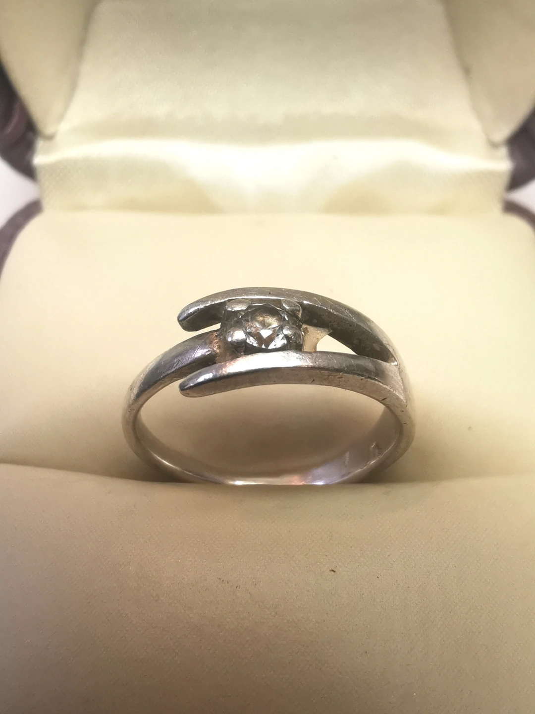 Italy 925 Sterling Silver Bypass Ring Size 4 Clear Solitaire