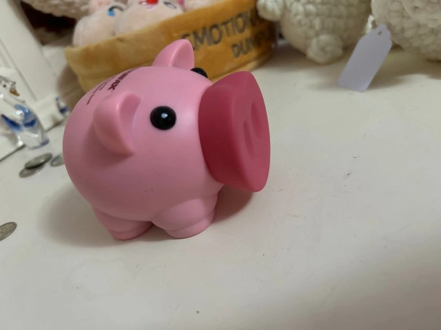 This mini Equifax piggy bank is adorable and a great way to start saving! It’s pink, compact, and already has some pennies to get you started. It's in good condition, ready for a new home. Perfect for kids or anyone who loves a cute way to save their change. If the ad is up, the piggy bank is still available, ready to embark on a new adventure with you!