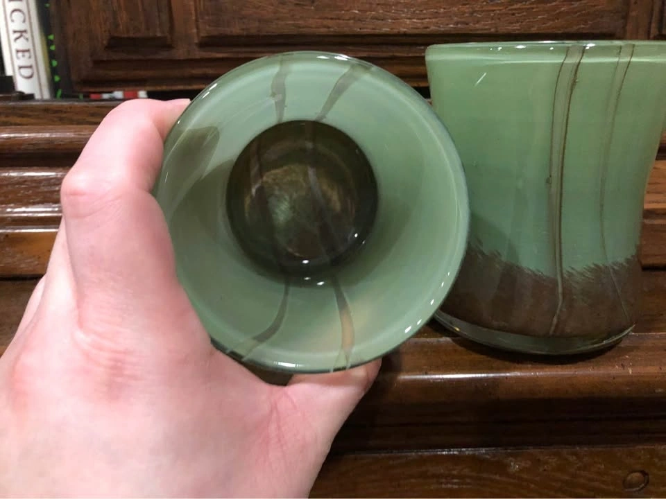 The colour is more of a jade green in person, and then it blends with that earthy brown. They’re heavier than expected each time I lift them, so I’d say they definitely have some weight to them.