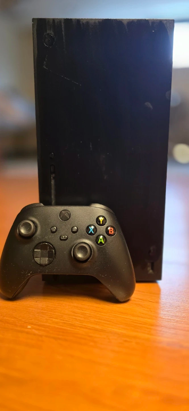 This is an Xbox Series X console with its official controller. It's black and ready for gaming! The console comes with the controller.