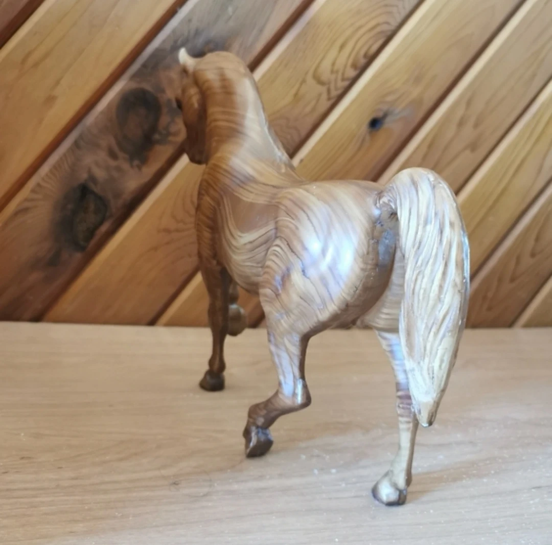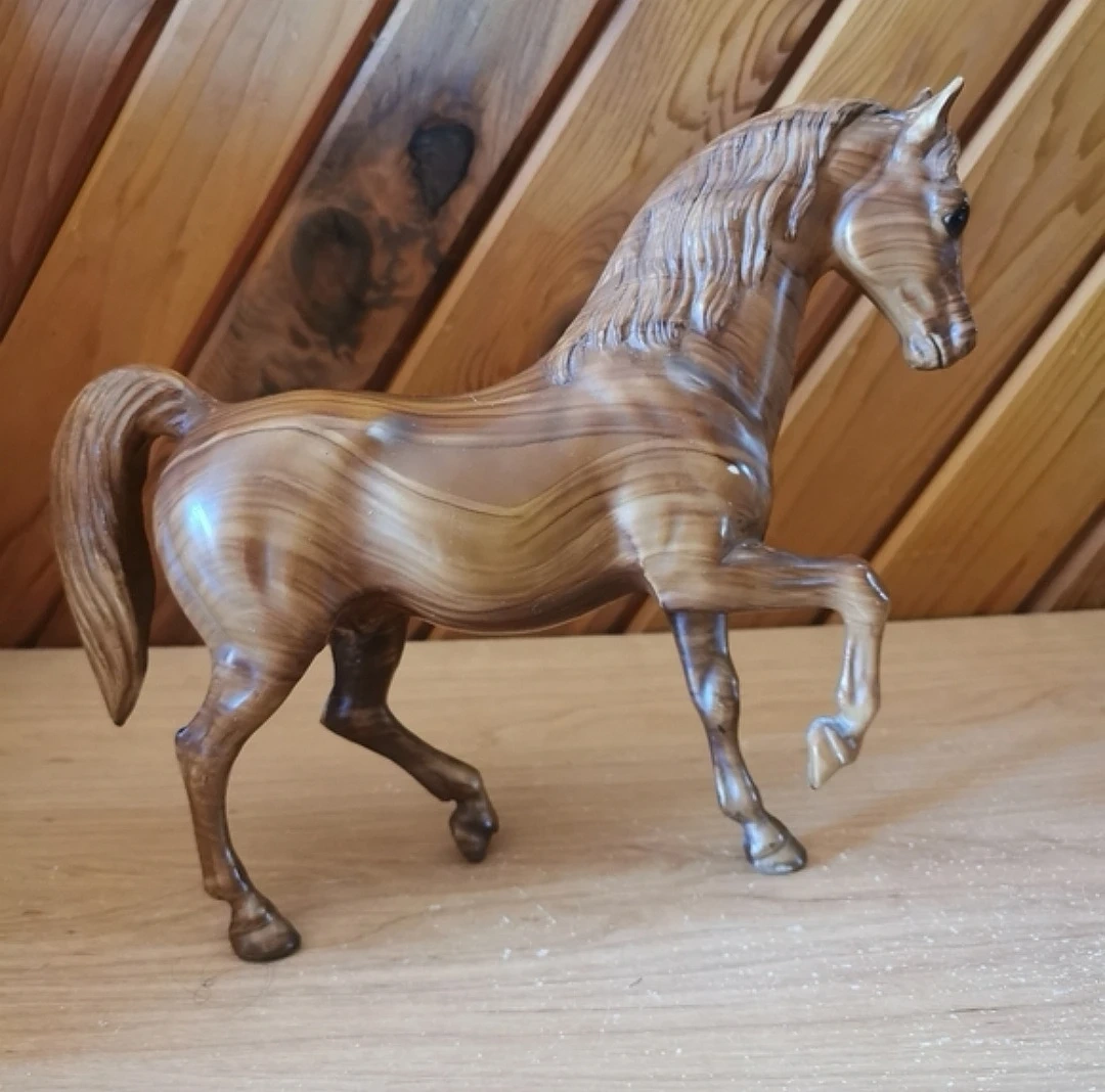 Crafted with exquisite attention to detail, this Breyer Classics model features a beautiful wood grain finish and lifelike anatomy that captures the grace and power of the Arabian horse. In excellent vintage condition, 8 inch tall, 10 inch long