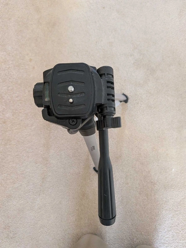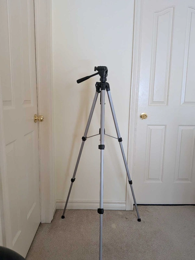 Selling a like-new Amazon Basics 60-inch tripod, perfect for photography and videography enthusiasts. Brand: Amazon Basics. Maximum Height: 60 inches. Material: Lightweight aluminum. Leg Sections: 3. Head Type: 3-way pan/tilt head. Quick-Release Plate: Yes. If you're seeing this ad, the tripod is available. Cash accepted.