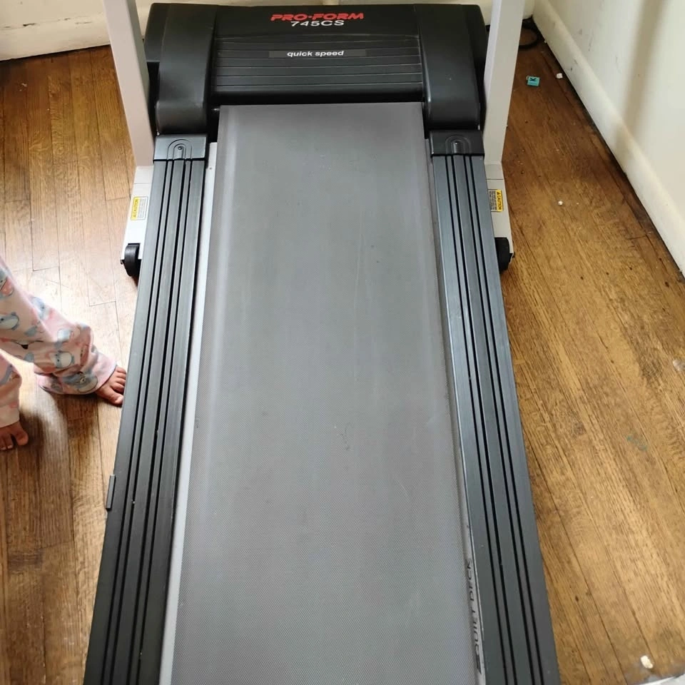 Sturdy Pro-Form 745CS treadmill with 'quick speed' function, 'Pacer Circuit' display, power incline, and EKG pulse sensors on the handlebars. Great for getting those steps in! Still works like new.
