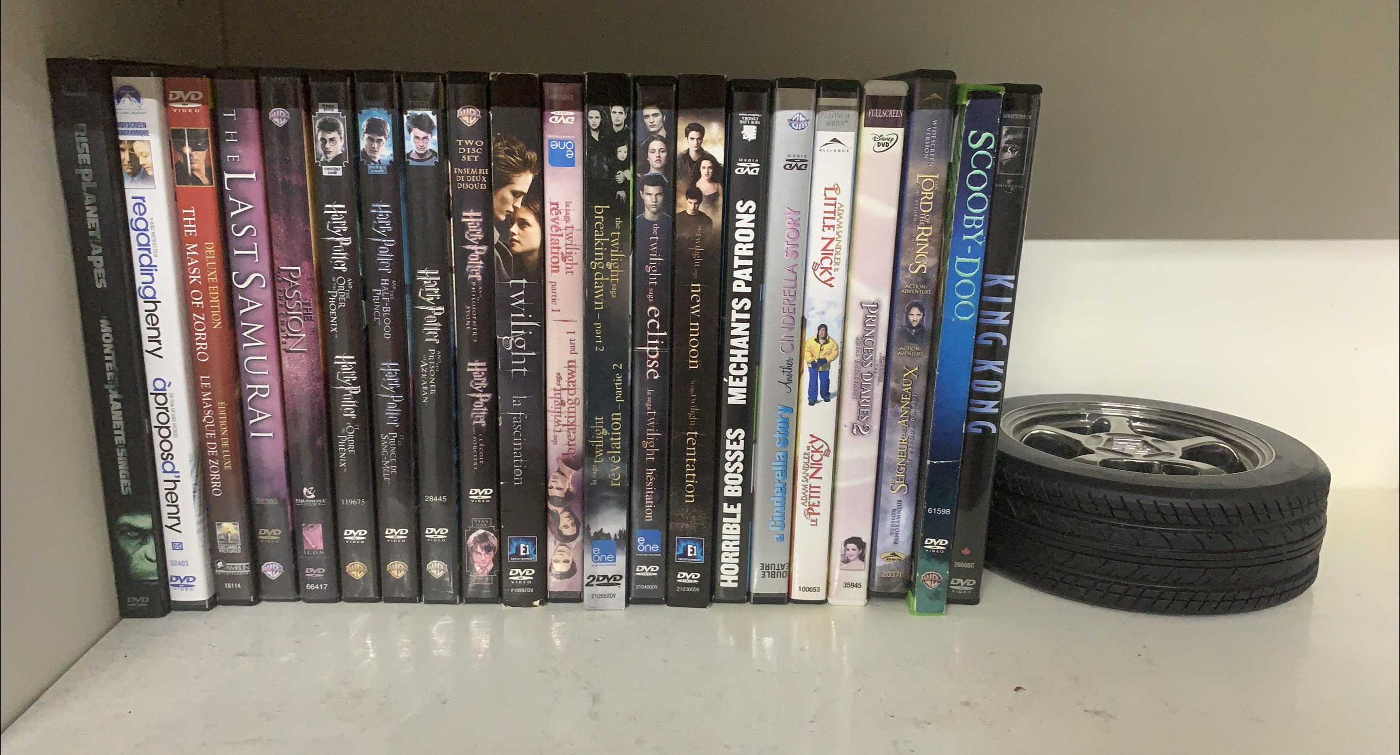 Selling a collection of DVDs including titles like Harry Potter, Twilight, and other popular movies! Perfect for movie nights or adding to your collection! Titles include Rise of the planet of the apes, Regarding Henry, The Mask of Zorro, The Last Samurai, The Passion of the Christ, Harry Potter, Twilight, Horrible Bosses, Little Nicky, Princess Diaries 2, Lord of the Rings, Scooby Doo, and King Kong Fast furious 1-6 Selling it all together for $50 or $5 each except fast furious for $20
