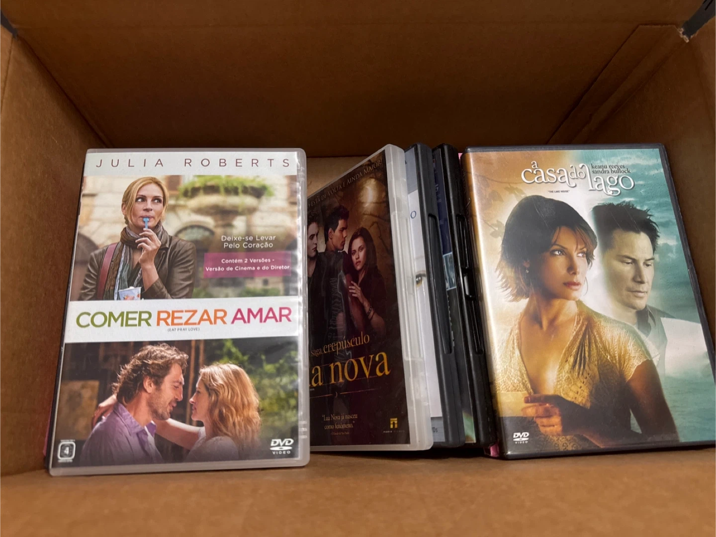 Selling a collection of DVDs! (19 movies - take all of them for 10bucks )Titles include: - Comer Rezar Amar (Eat Pray Love) starring Julia Roberts - Lua Nova (New Moon) - Casa do Lago (The Lake House) starring Keanu Reeves and Sandra Bullock - Plano B (The Back-up Plan) - Noivas em Guerra (Bride Wars) starring Anne Hathaway - Hotel Transylvania Perfect for a movie night or to add to your collection
