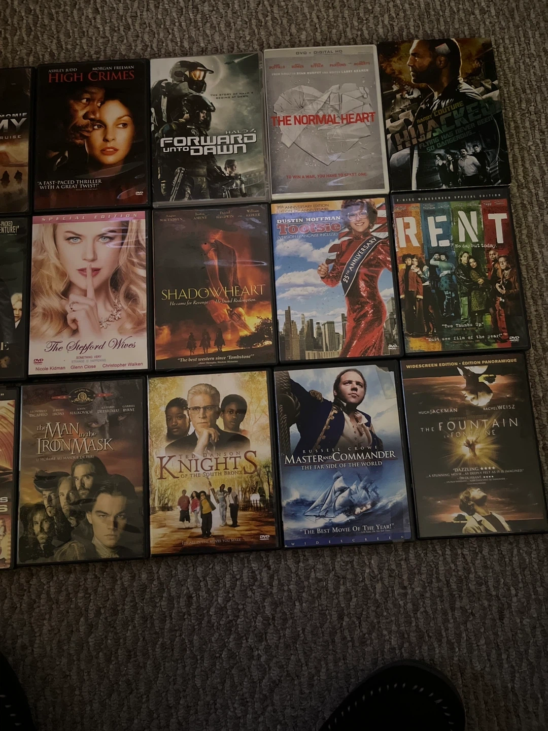 Selling a collection of DVD movies. Titles include A River Runs Through It, Zulu, Rent, and many more! Great for movie nights or expanding your collection