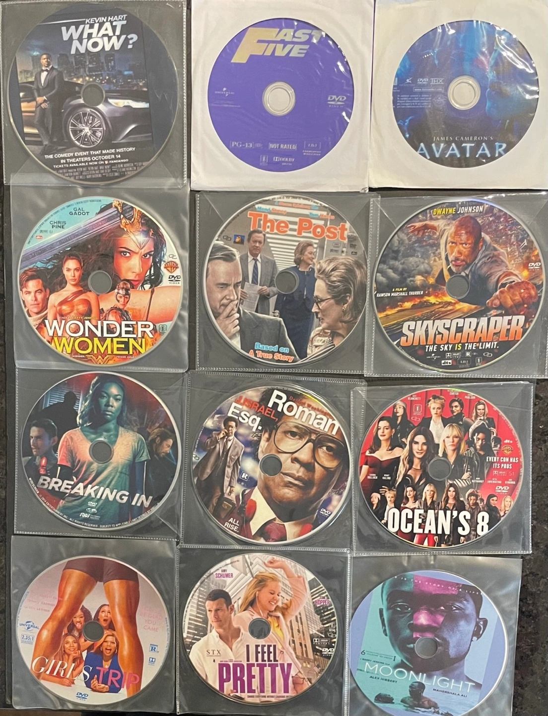 $5 each or group of 5 for $20 All DVDs are in near perfect condition. Only wear and tear on the cases. Can send more photos/video if you wish to see. 🚨MOVING SALE. Everything must go ASAP. Feel free to browse my other listings. If you purchase multiple items, I can provide a discount. Pick up only.🚨 Pick up in Toronto-East York (Eglinton & Leslie, close to Sunnybrook Park). Smoke-free home. No e-transfer, cash only. Take as is, no trades or price negotiations. Final sale. Reason for selling-moving. List below: - Up in the air - Last Holiday (BlueRay) - My name is Khan - Crazy Stupid Love - The Blind Side - Kevin Hart - What Now? - Fast Five - Avatar - WonderWomen - The Post - Skyscraper: The sky is the limit - Breaking in - Roman - Ocean’s 8 - Girl’s Trip - I Feel Pretty - Moonlight - Transformers: Dark of the moon