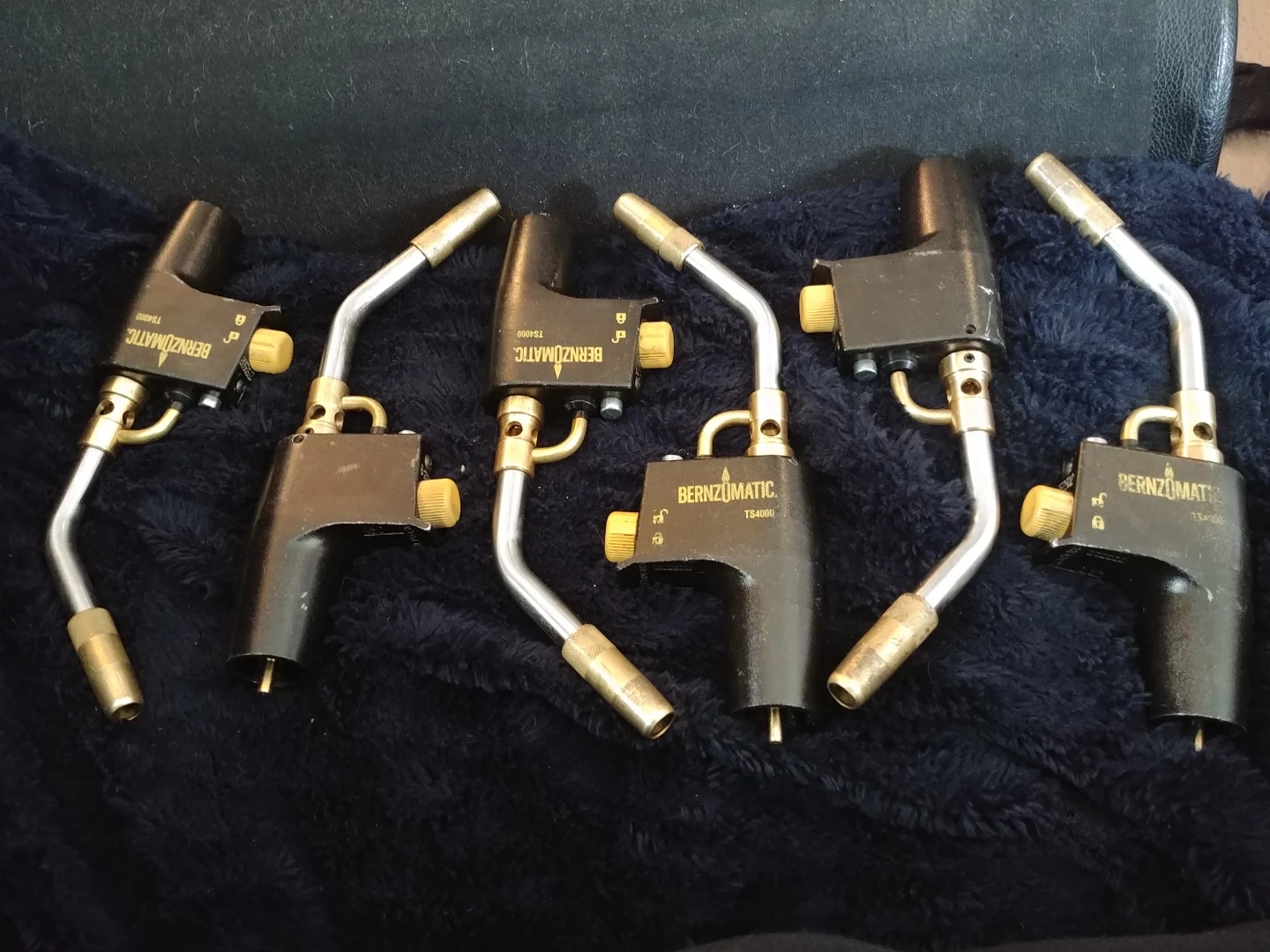 This is a Bernzomatic TS4000 propane torch. It's designed with a trigger-start ignition for easy use. The torch features a durable brass construction for longevity.