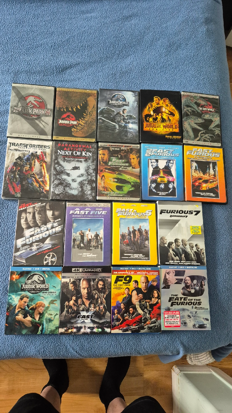 Excellent condition like new Prices firm & non negotiable Dvds $3 each 2/$5 Bluerays $5 each 2/$8 4k $11 Will consider trades for below: Fear the walking dead trilogy (blueray or 4k) Figurines (Silent hill, Resident Evil, The walking dead, disney) Diecast cars (hot wheels, fast and furious, Disney, the walking dead, match boxes)