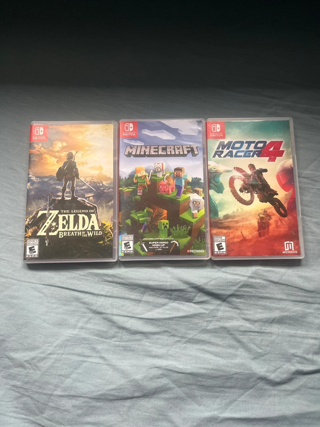 Includes The Legend of Zelda: Breath of the Wild, Minecraft, and Moto Racer 4. All games are for the Nintendo Switch platform and come with their original cases. Rarely used.