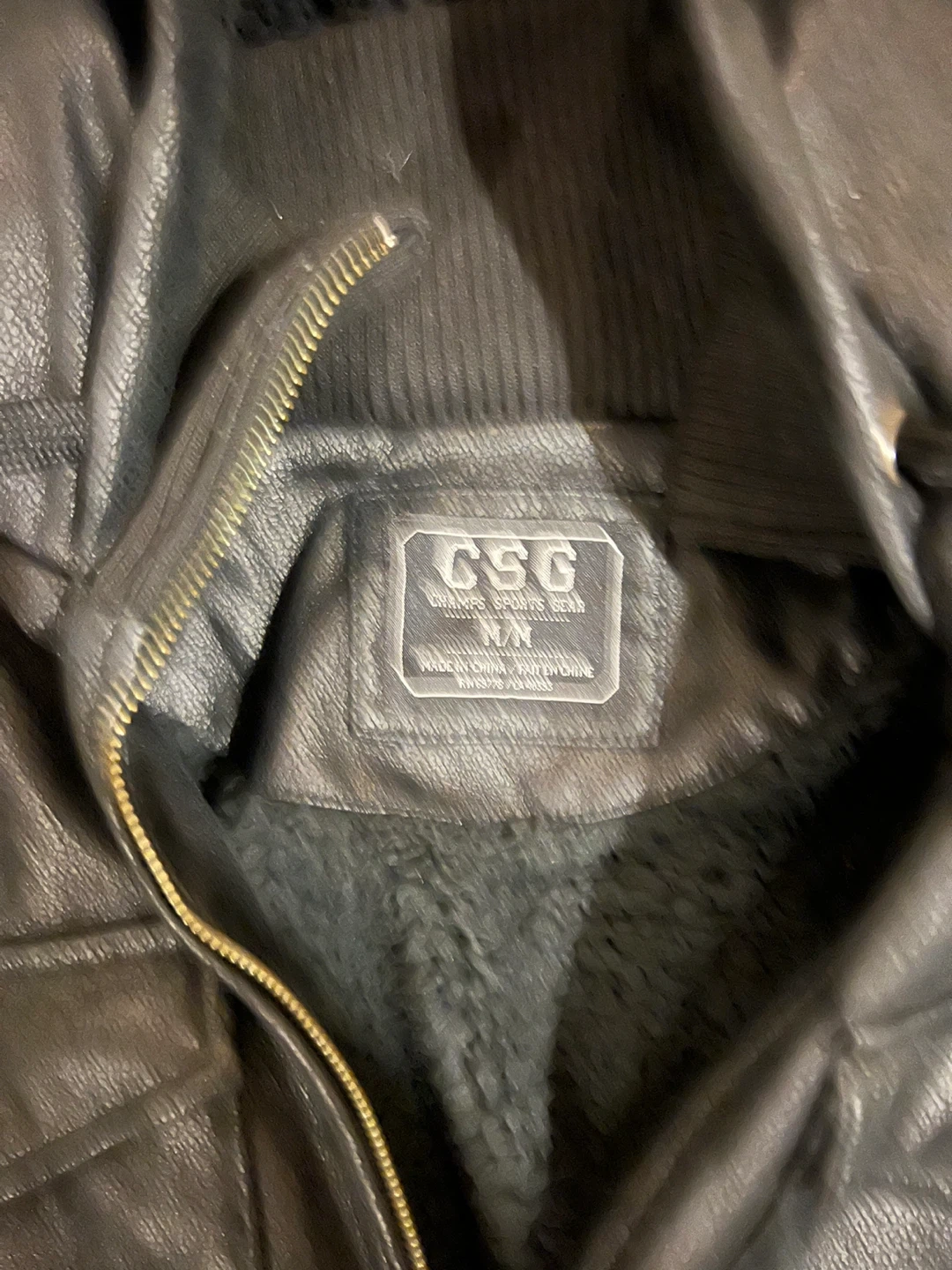 CSG Black Faux Leather Bomber Jacket Size M