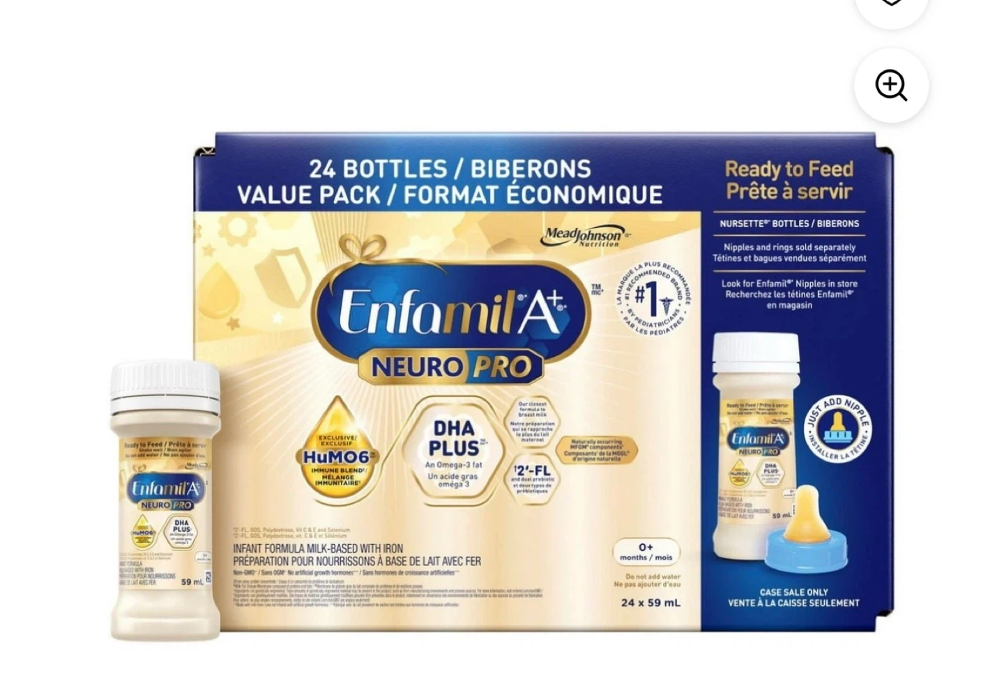 19 - ready-to-feed infant formula bottles. Each bottle contains 59 mL of Enfamil A+ Neuro Pro formula. It includes DHA and 2'-FL for immune support.suitable for infants 0+ months.