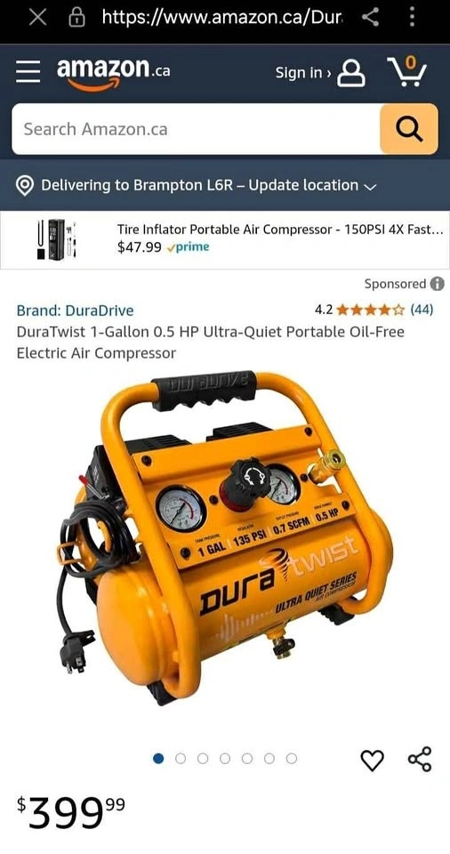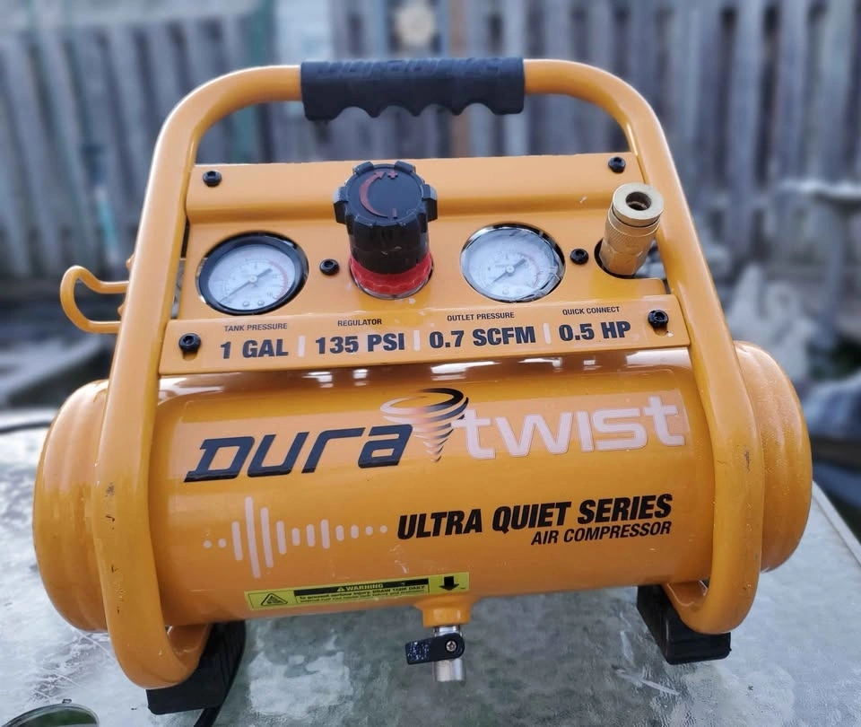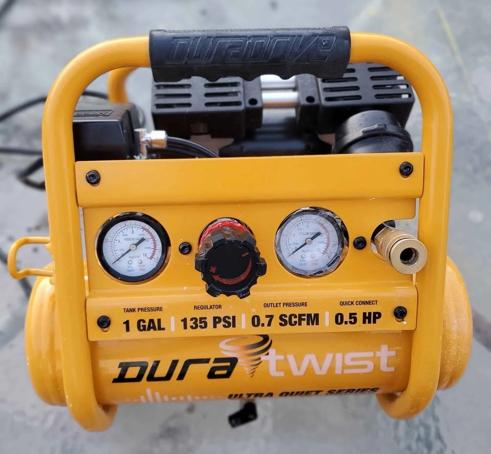 New DuraTwist 1-Gallon 0.5 HP Ultra-Quiet Portable Oil-Free Electric Air Compressor.