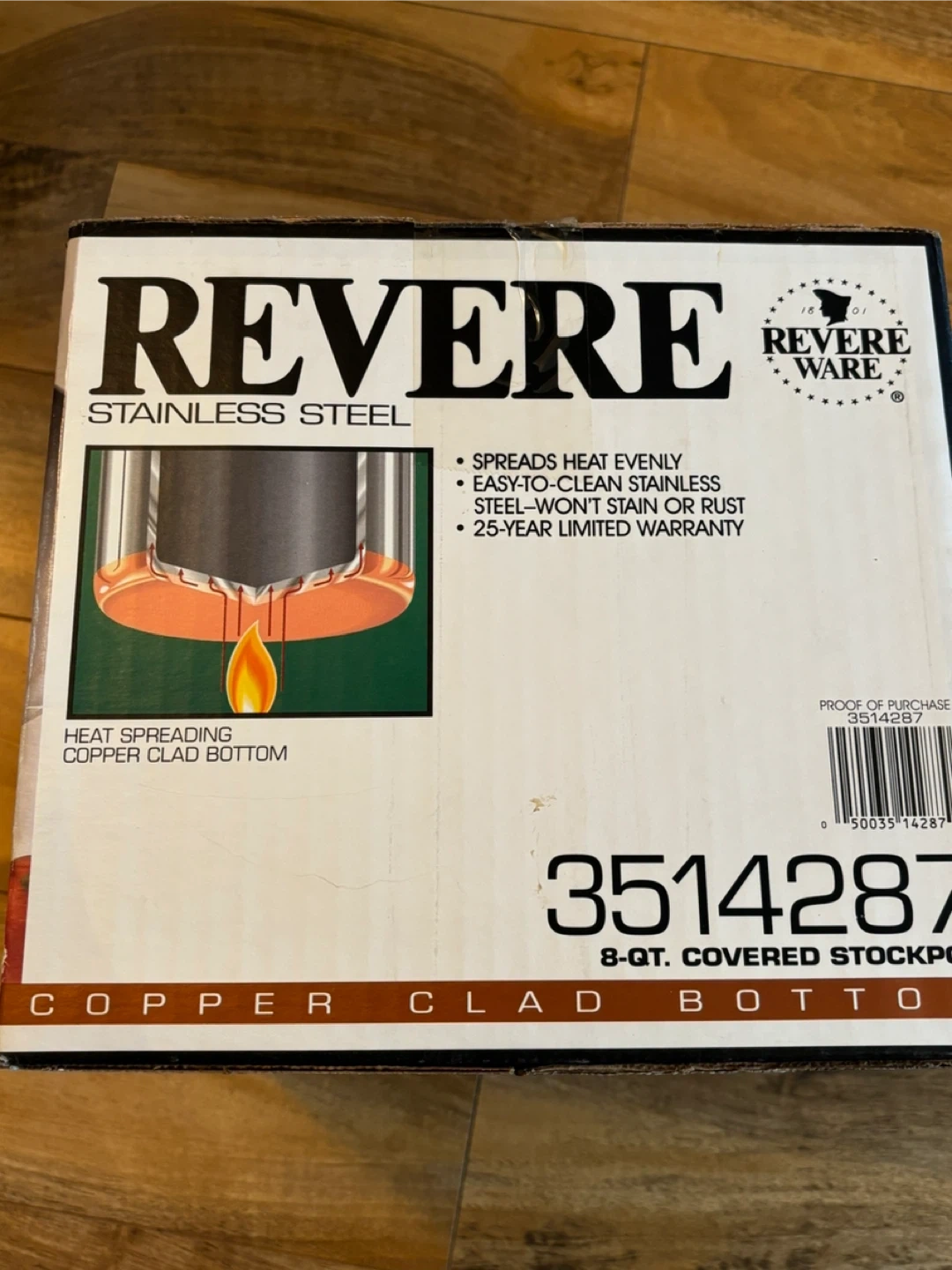 NEW Revere Stainless Steel 8-Qt. Covered Stockpot