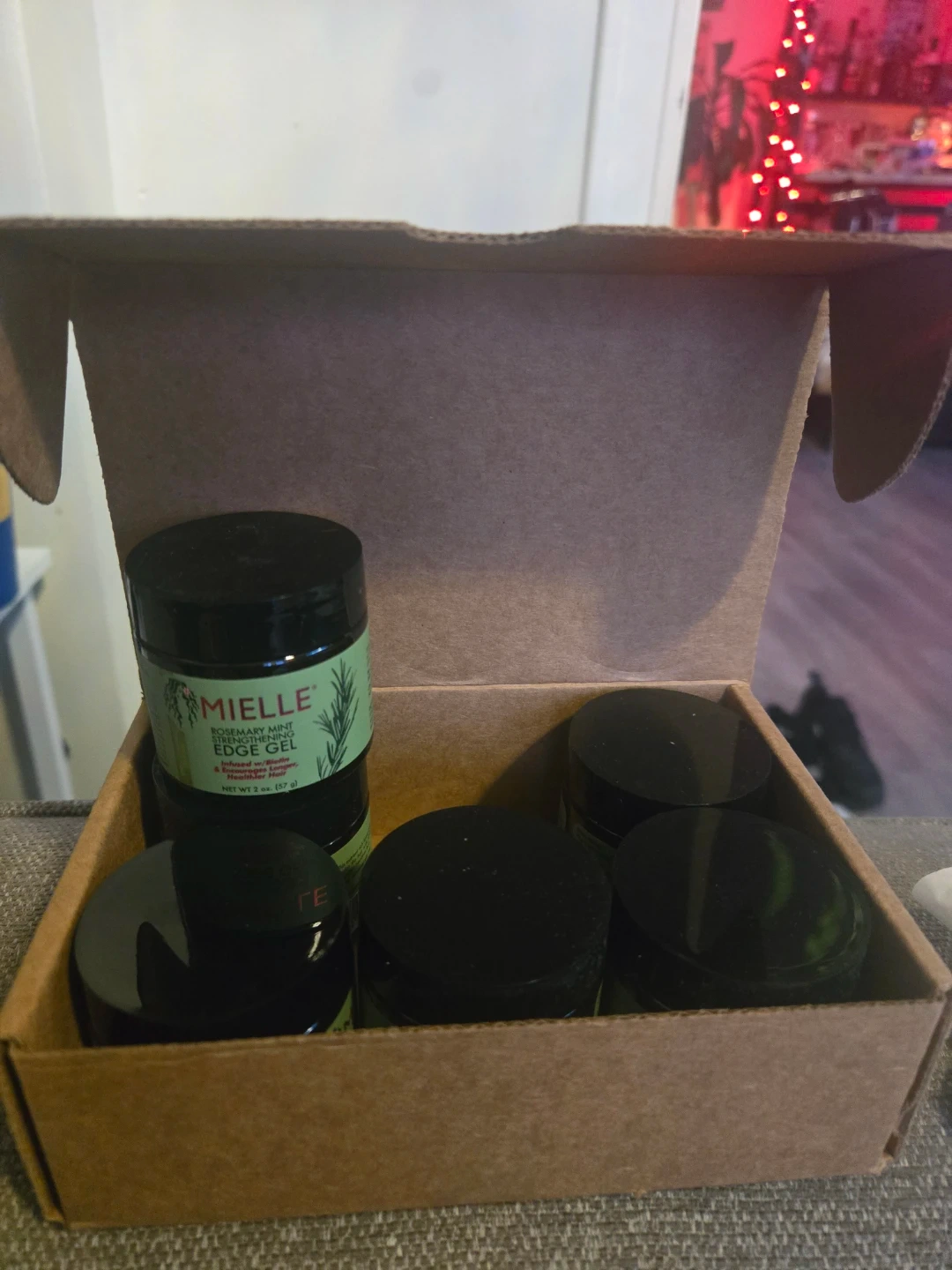 Six jars of Mielle Organics Rosemary Mint Strengthening Edge Gel. Each jar is 2 oz. This gel provides strong hold for hair and edges.