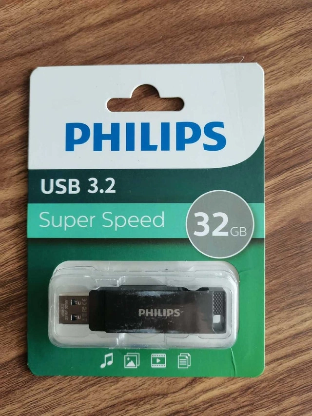 This is a new Philips 32GB USB 3.2 Super Speed flash drive, perfect for fast and reliable data storage on the go. Specifications: