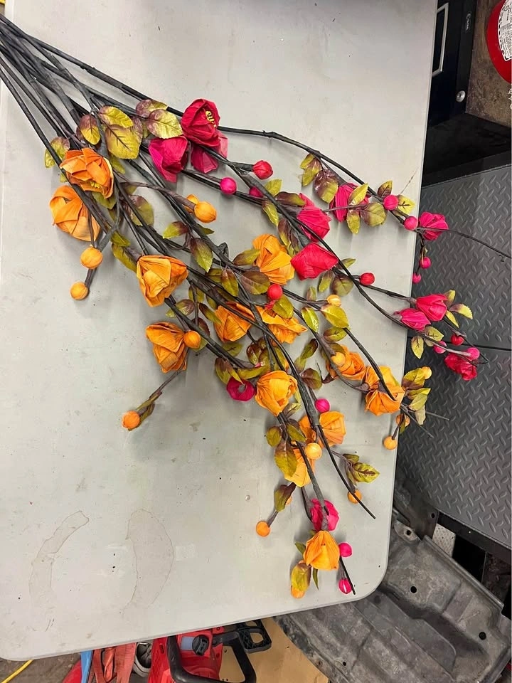 These are 4-foot long, Japanese-style silk flowers, perfect for a large floor vase. Let me know if you're interested!