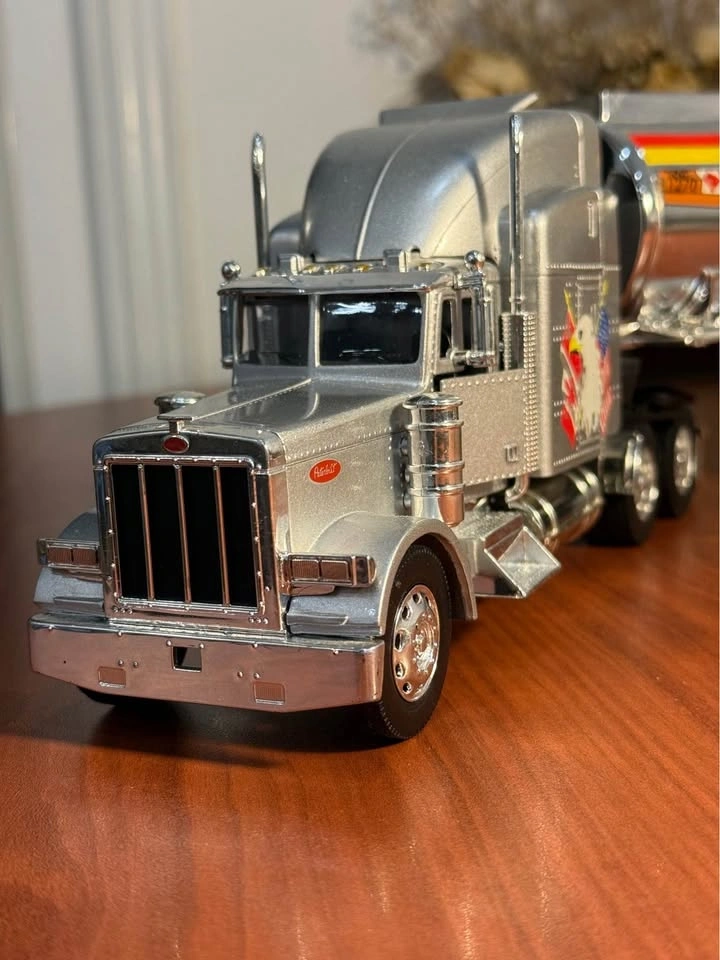Selling a detailed 1:24 scale Peterbilt tanker truck diecast model with Shell branding. Features realistic chrome finish, classic Peterbilt design, Shell fuel tanker trailer, rubber tires, and rolling wheels. This model has great presence and looks amazing on a desk or shelf. Perfect for diecast collectors or anyone into trucks. Very good condition – well kept, no major damage. Pickup near Mavis & Eglinton, Mississauga.
