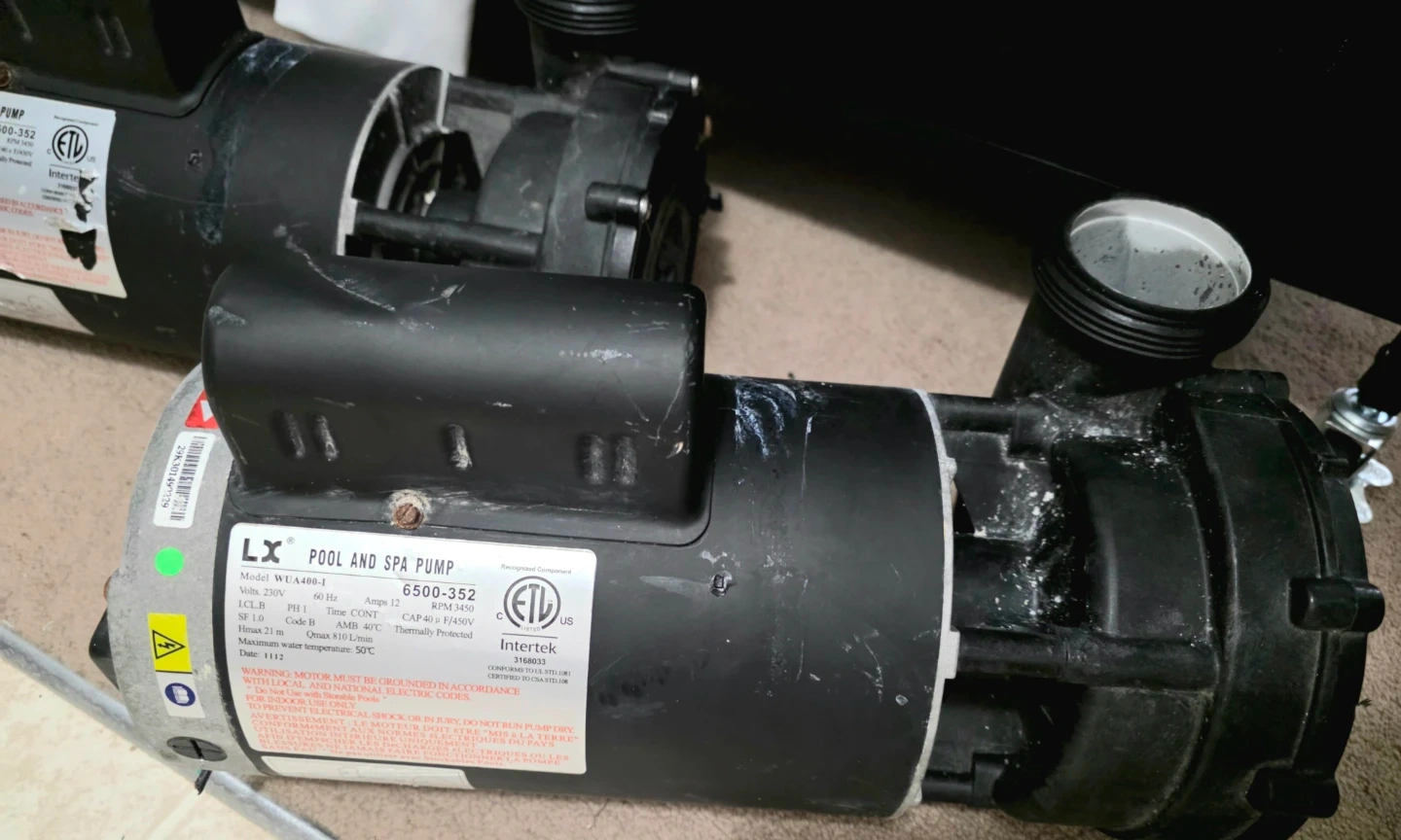 2 LX Pool and Spa pump, model 6500-352. It's 1/2 HP and runs on 230V, there's 2. Maximum water temperature is 50°C. Gecko Alliance aqua-flo pump for leisure water industry.