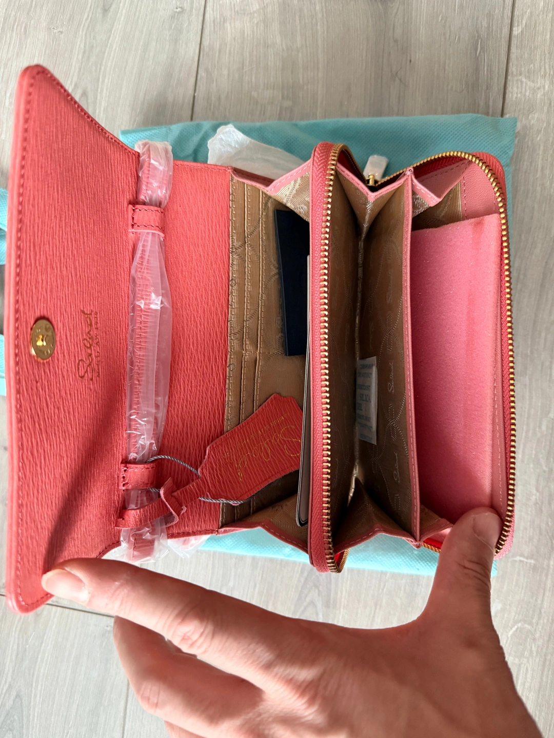 SALAD leather crossbody / wallet-style bag in coral red colour.