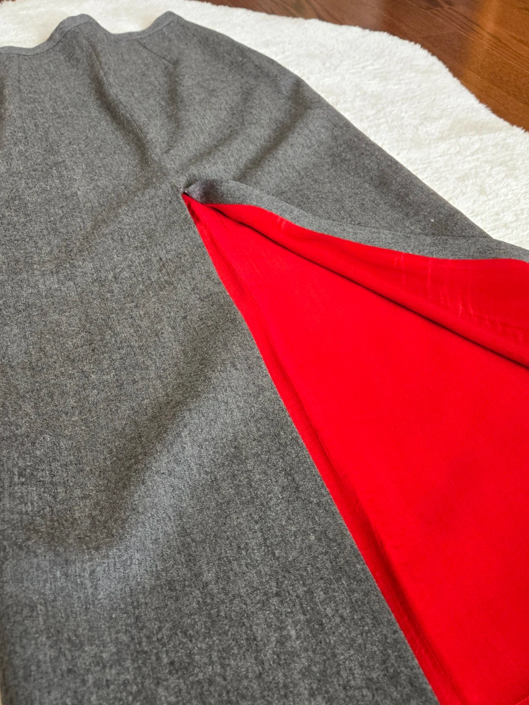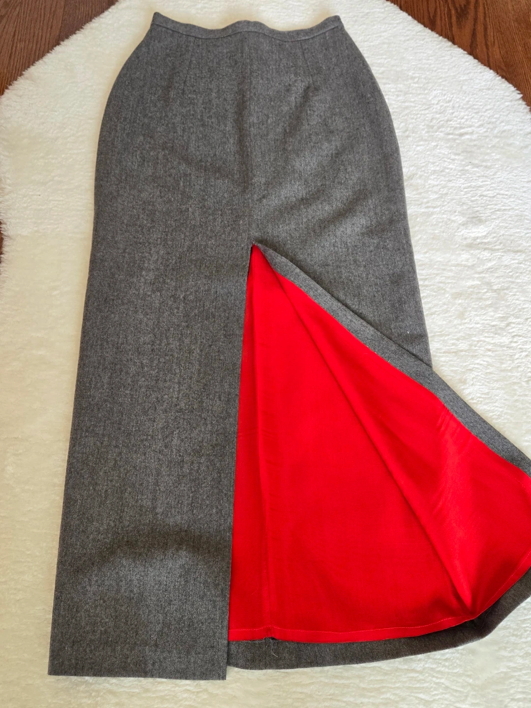 Grey Blazer + Long Pencil Skirt with Red Lining
