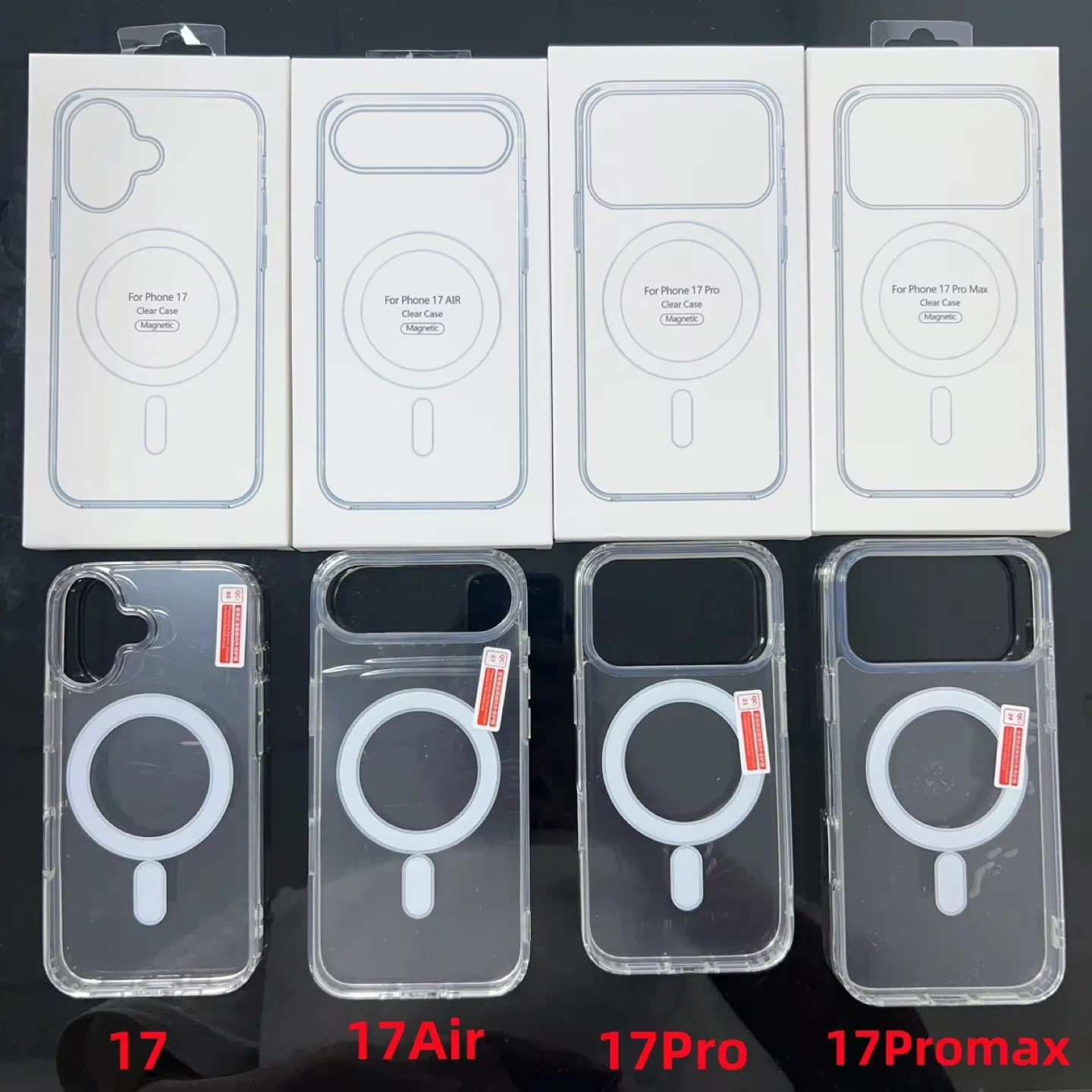 These are clear, magnetic phone cases designed for the iPhone 17 series. They come in models for iPhone 17, 17 Air, 17 Pro, and 17 Pro Max. The cases offer a protective and stylish option with built-in magnetic compatibility. They're made of clear material to show off your phone's original design.