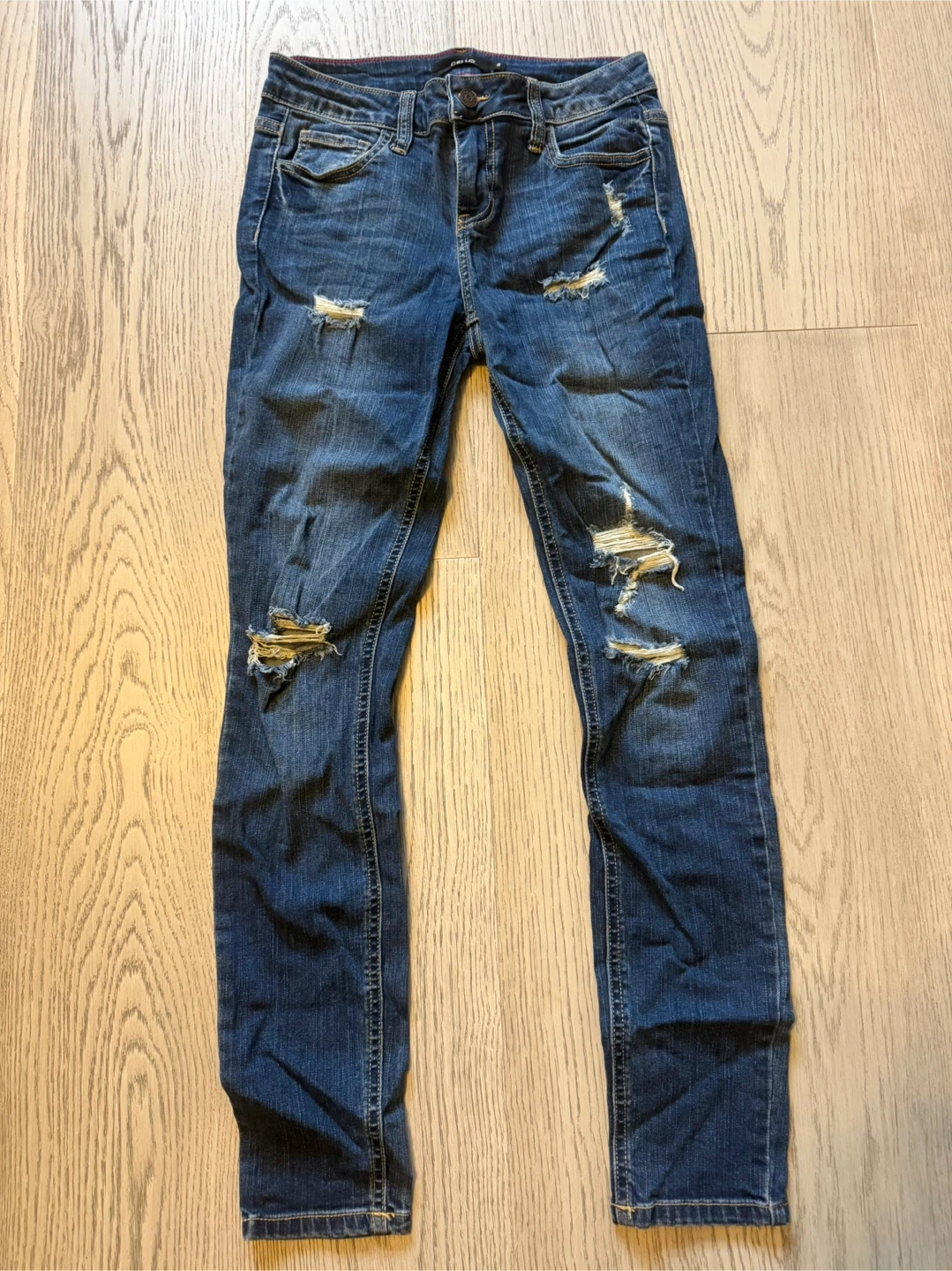 Buy & SellWomen's Distressed Skinny JeansWomen's Distressed Skinny Jeans$15Dark wash Cello skinny jeans with distressed details. Size 3 and Size 5. Great for a casual, edgy look!ConditionNewBrandCelloWHERE TO MEETMeet nearbyView MapSELLERCCParkwoods889220 reviews0 chats·0 favorites·4 viewsSEND CHAT TO SELLERHi CC! I’m interested in your listing.Hi CC! I’m interested in your listing.Get the Karrot app to chatSign In to chat