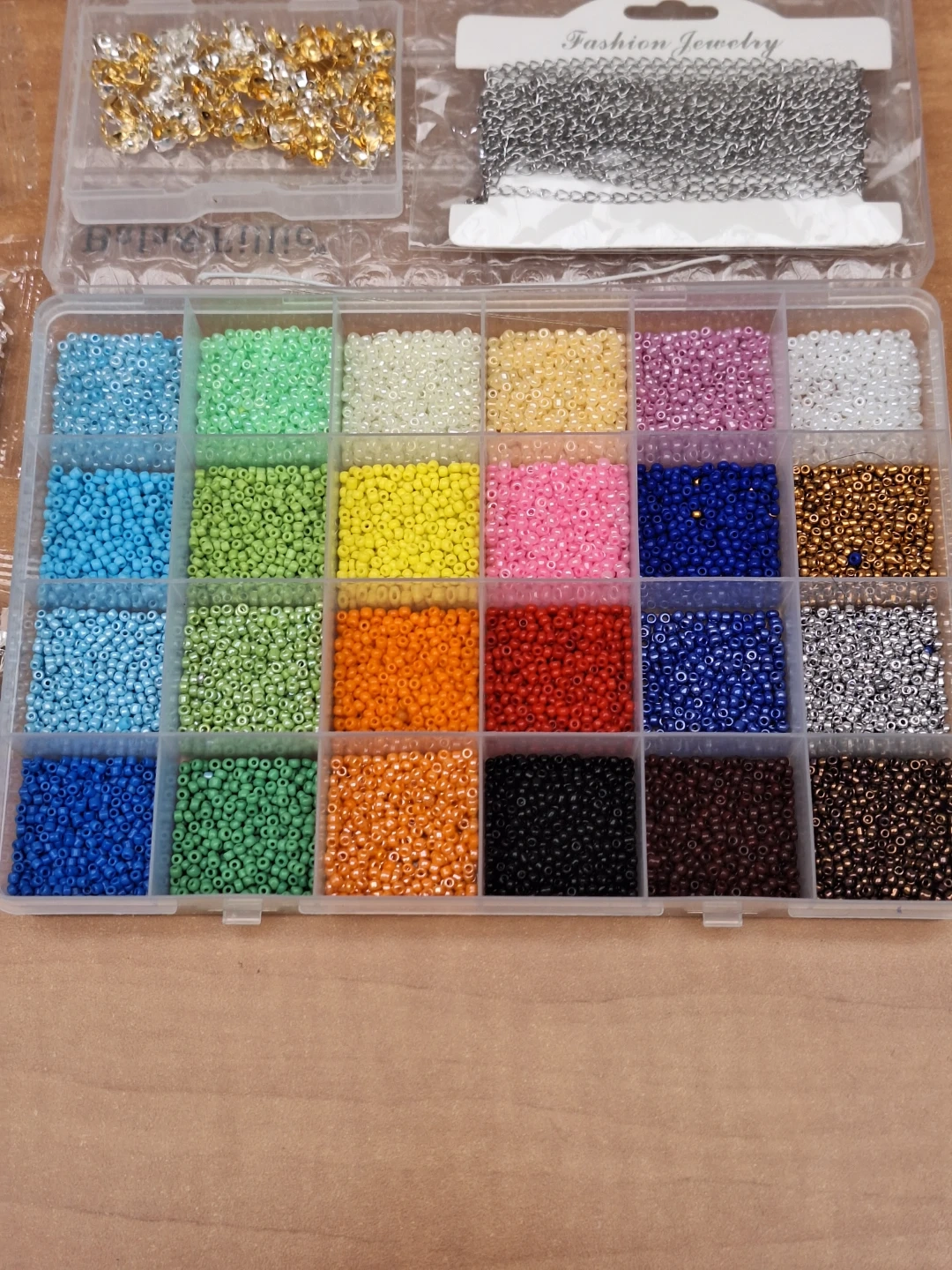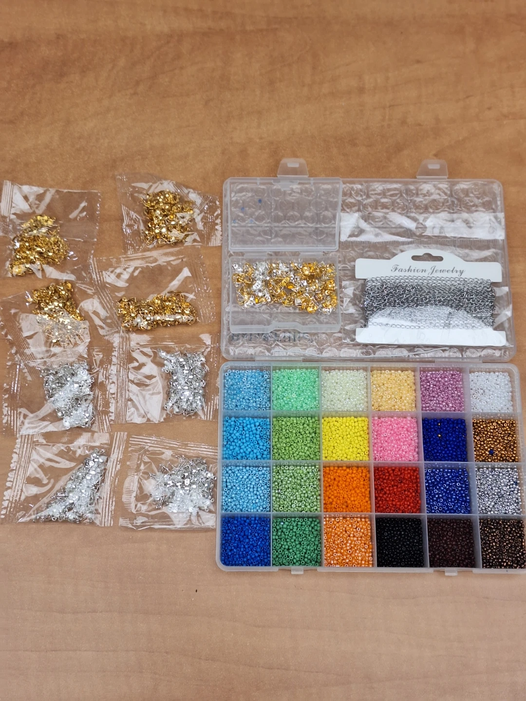 Crafting kit includes a variety of seed beads in a case. It also comes with assorted metal findings and chains for jewellery making. Some beads were used, metal pieces are new in packages. Cash only, pick up at Donmills & Finch area.