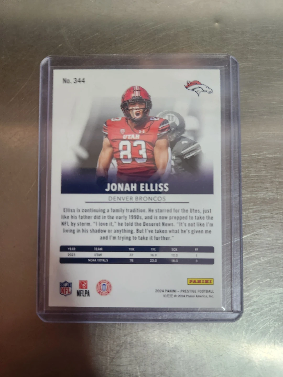 Selling a Jonah Elliss Denver Broncos rookie card from the 2024 Panini Prestige collection! A great addition for any football card collector or Broncos fan