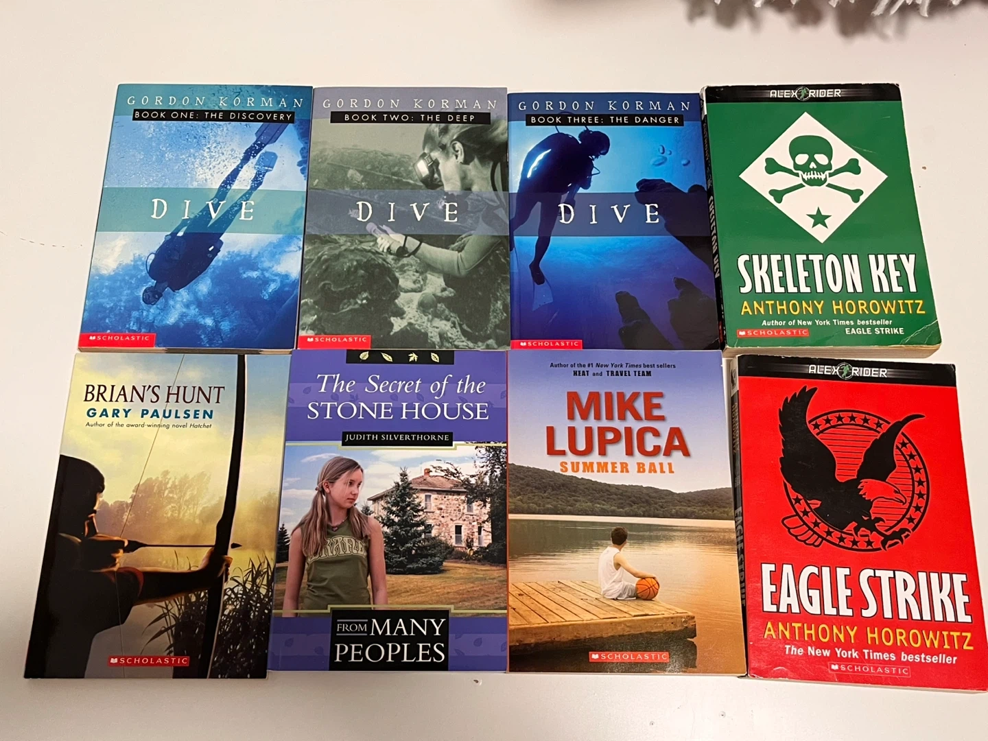 Includes Gordon Korman's 'Dive' series (Books 1-3), Alex Rider books 'Skeleton Key' and 'Eagle Strike', and titles by Gary Paulsen, Judith Silverthorne, and Mike Lupica. Great reads for young adults!