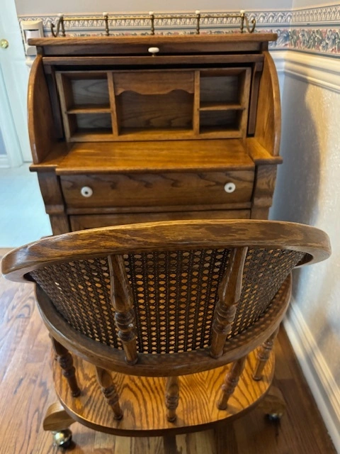Pulaski RollTop Desk + Oak Captains Chair (Keepsakes Collection)