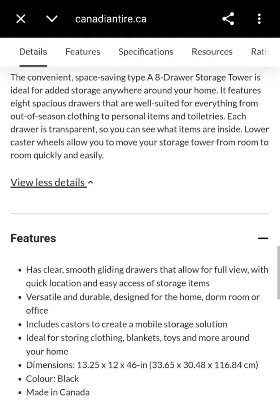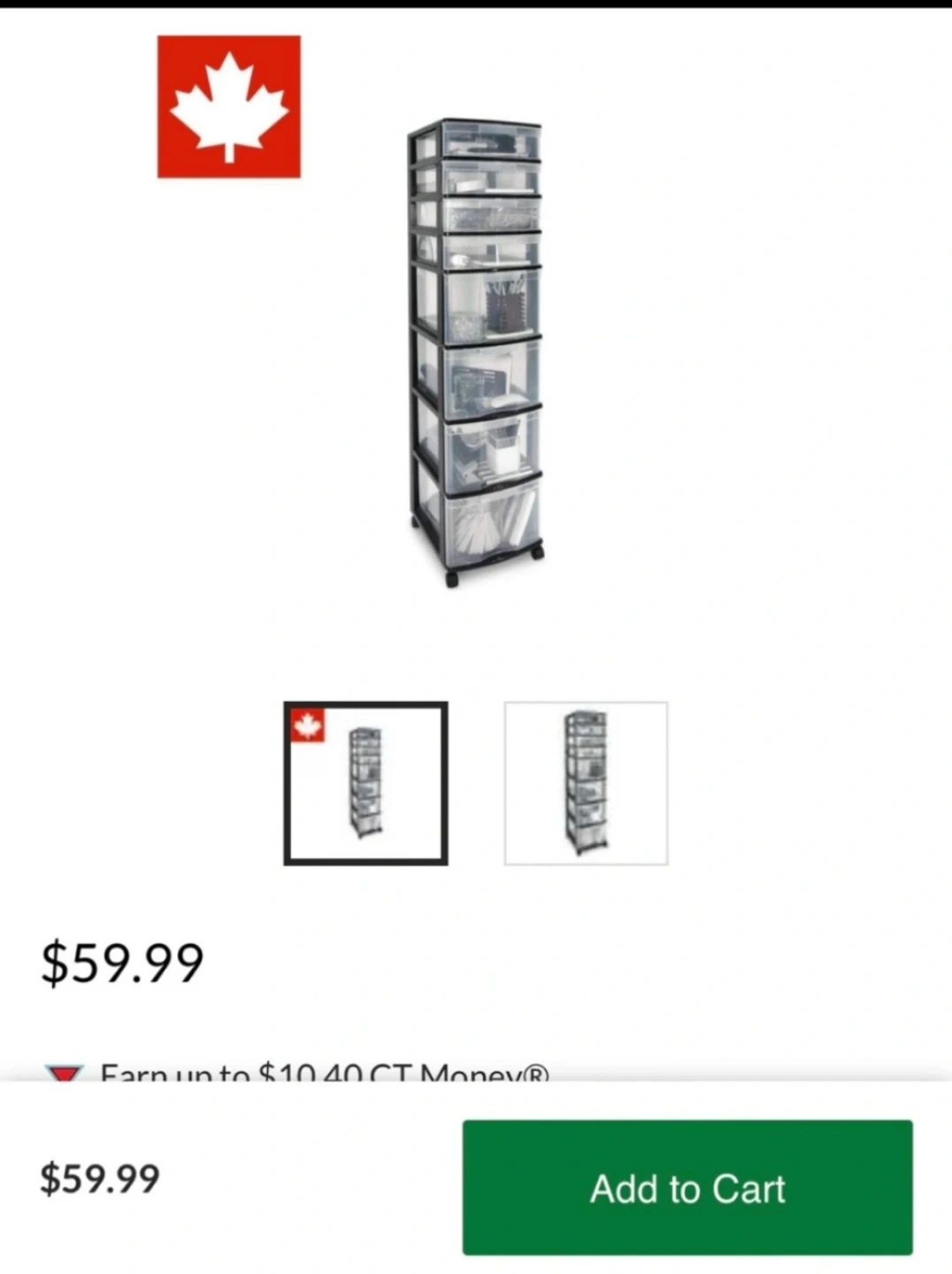 This 8-drawer storage tower is ideal for added storage anywhere in your home. It comes with clear, transparent drawers and caster wheels for easy mobility. Made in Canada, it's great for organizing personal items and toiletries.