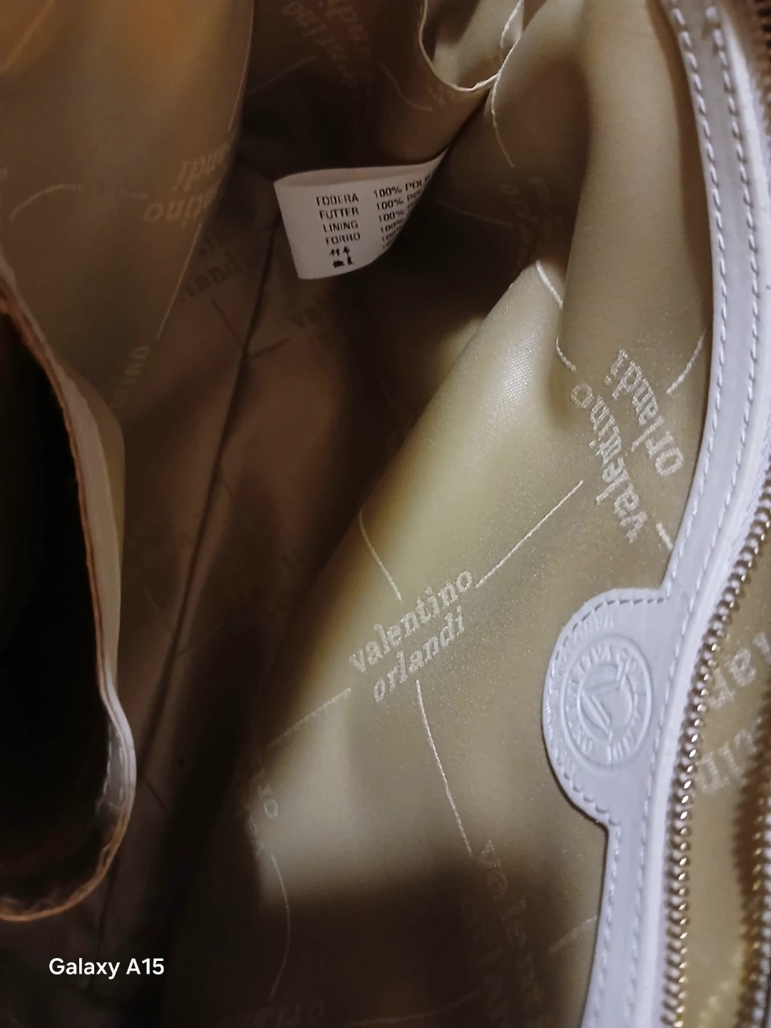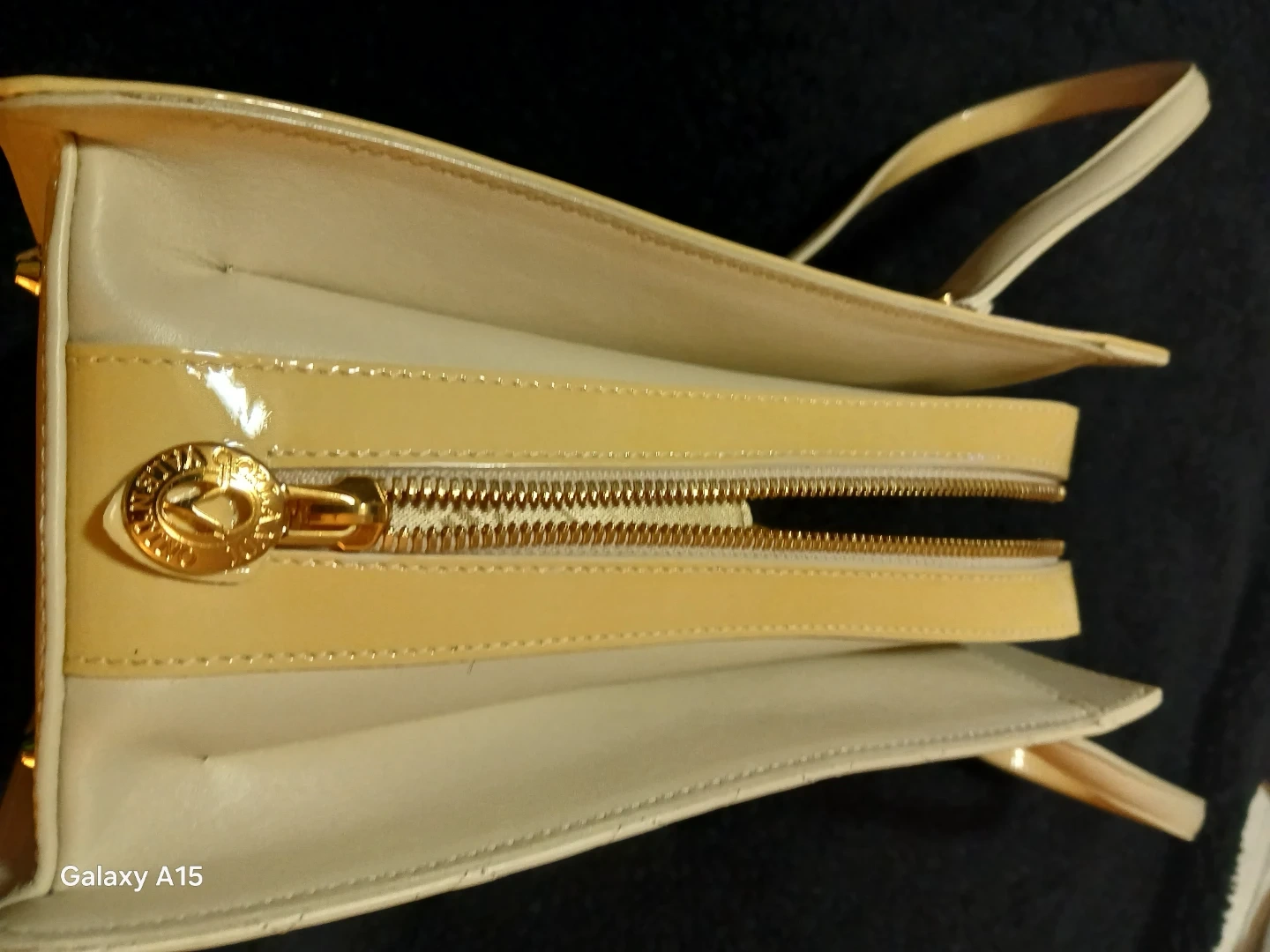 Valintino Orlandi cream handbag with a quilted front and smooth back panel. Made in Italy from genuine leather, it's perfect for carrying your essentials. Features multiple compartments inside for organization.