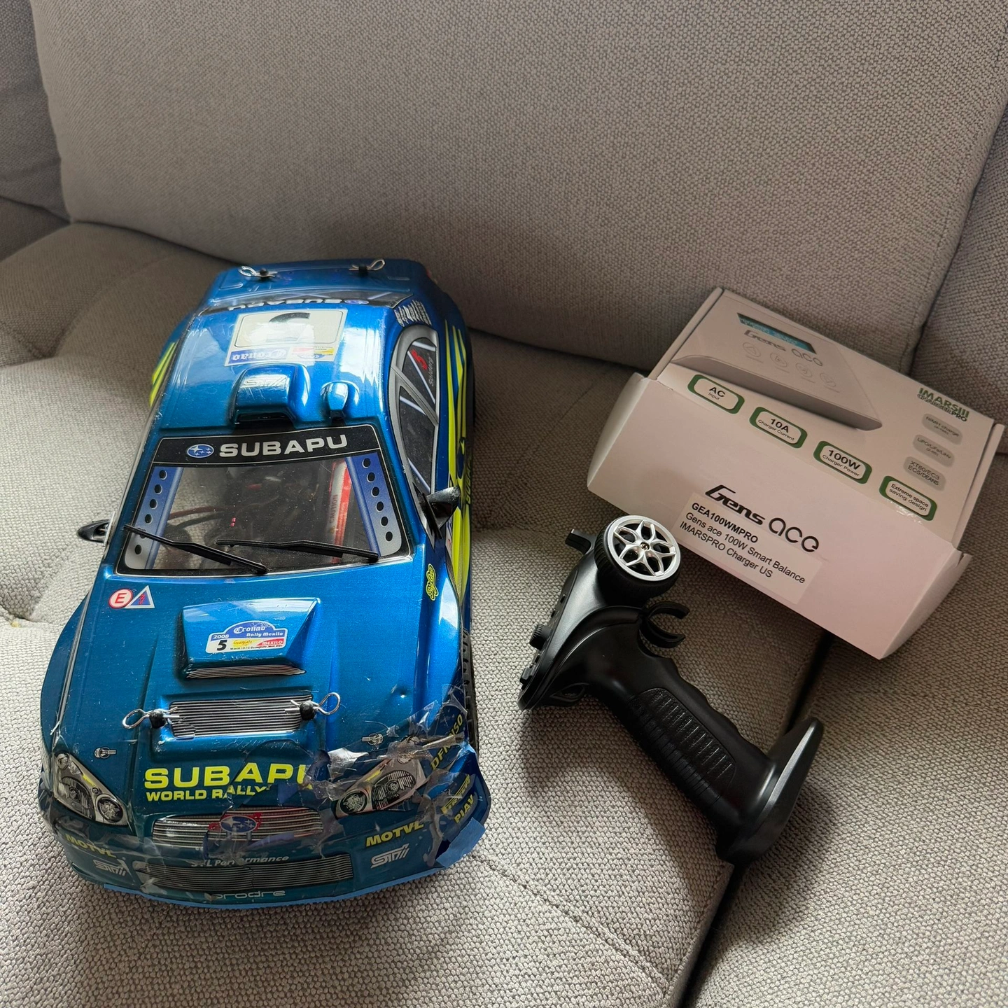 Not really familiar with RC cars but bought for the kids to play with but it’s just sitting around not being used. Best suitable for preteens and older. Wouldn’t recommend for little kids unless adult supervision is present. Goes fast about 20-30mph in my opinion. I believe it’s 1:10 scale. Very fun to play with. It is 4WD. The charger is practically new. Purchased it separately. The shell has damage.