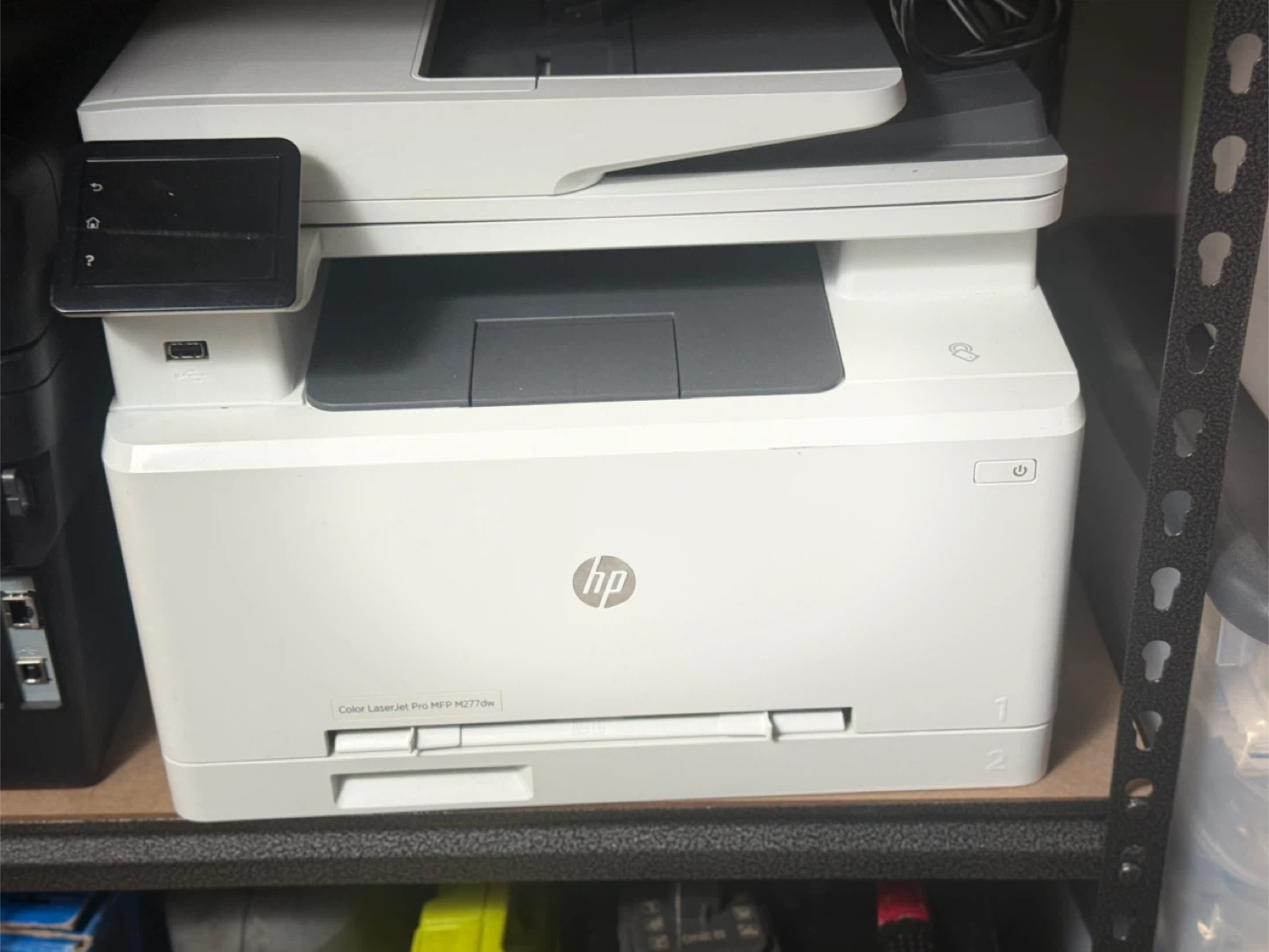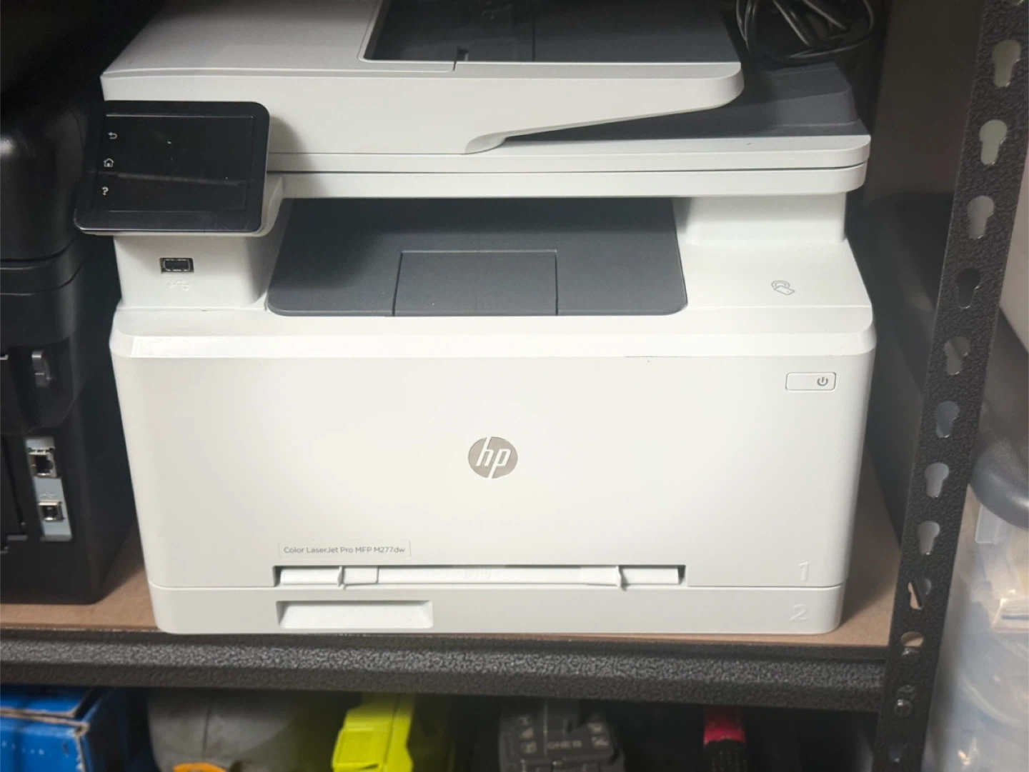 Selling an HP Color LaserJet Pro MFP M277dw multifunction printer. It's a colour laser printer with scanning and copying capabilities. This unit is great for home or small office use! Needs some toner.