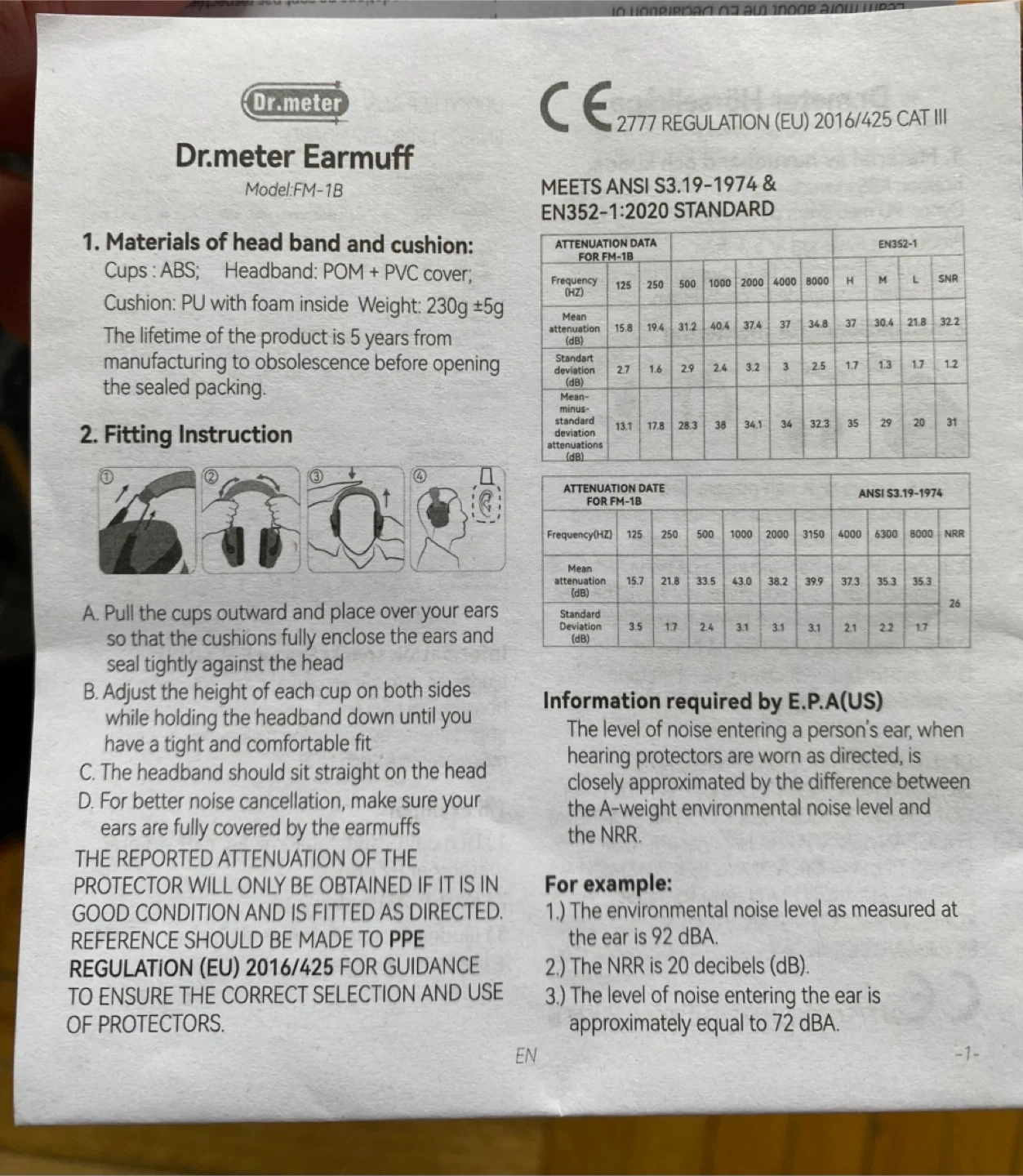 These Dr. meter earmuffs provide 31 dB of noise reduction with a comfortable, adjustable headband. They offer sound isolation and are made with foam faux leather for a snug fit. These are great for noisy environments like shooting ranges or construction sites.