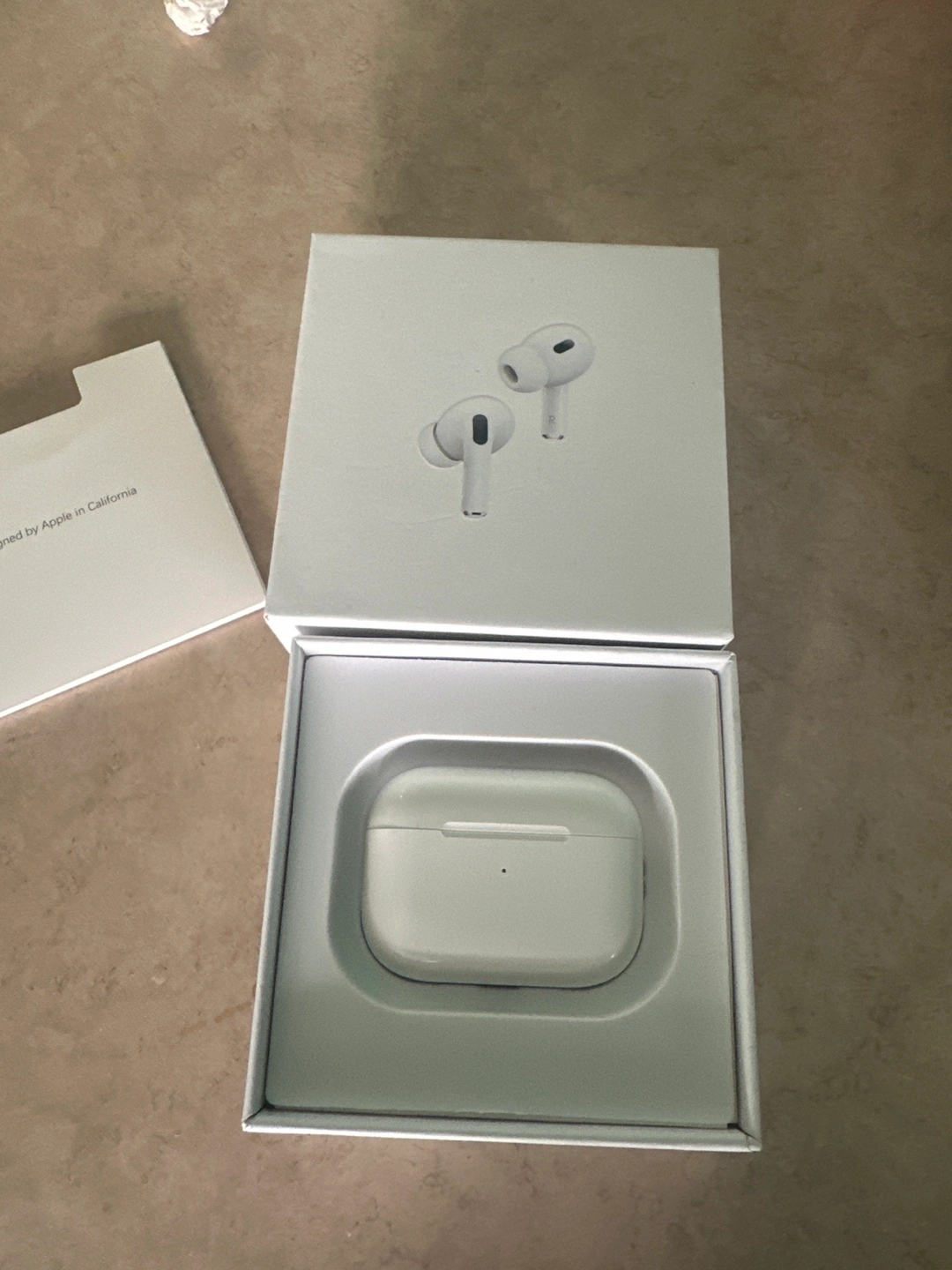 Wireless earbuds with charging case. Designed by Apple in California. Assembled in Vietnam *open box price is negotiable.