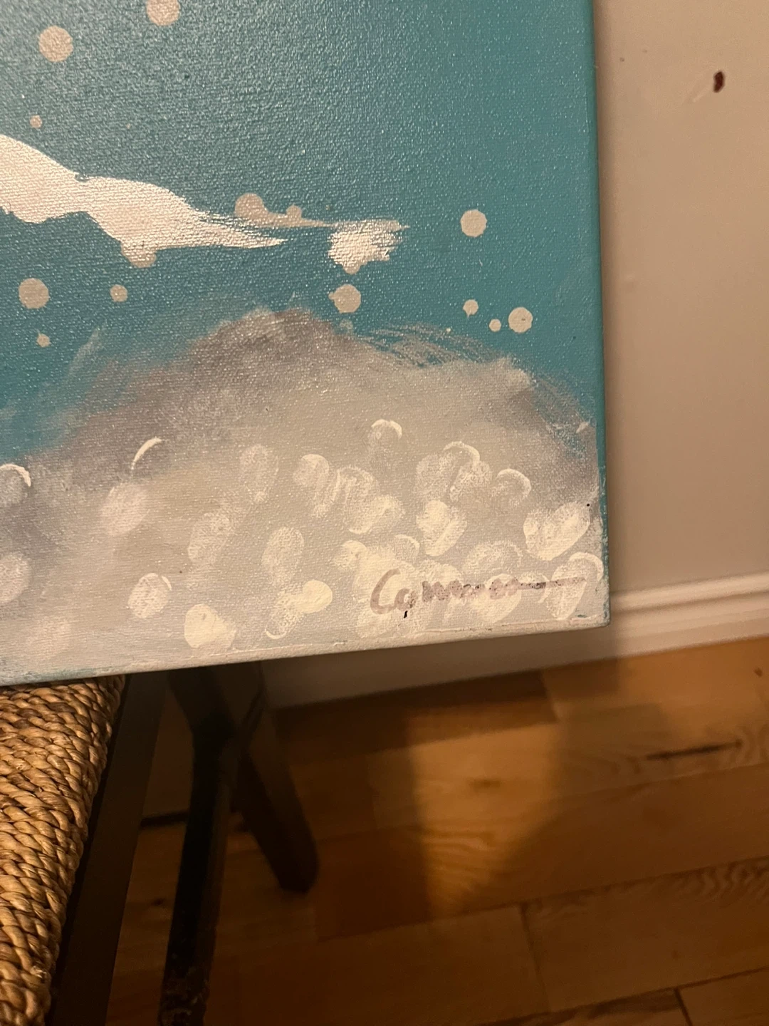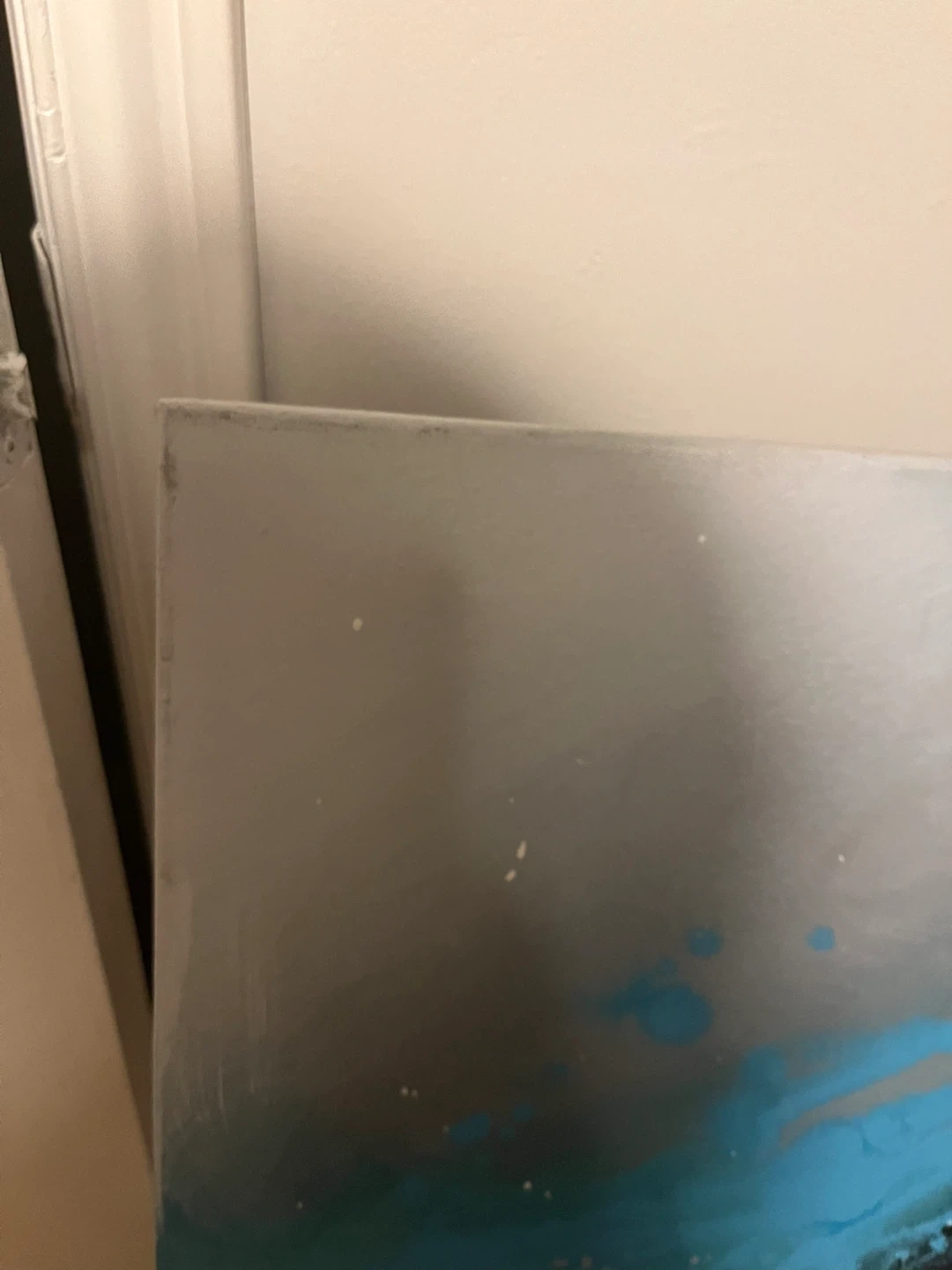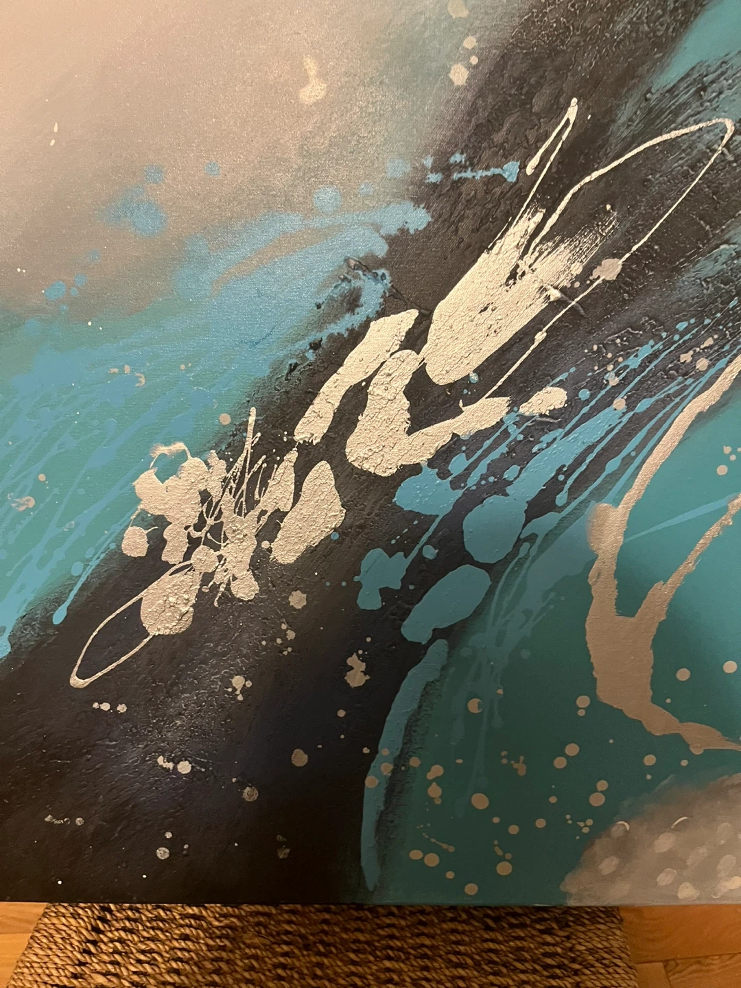 Abstract Canvas Painting - Turquoise, Black, Silver